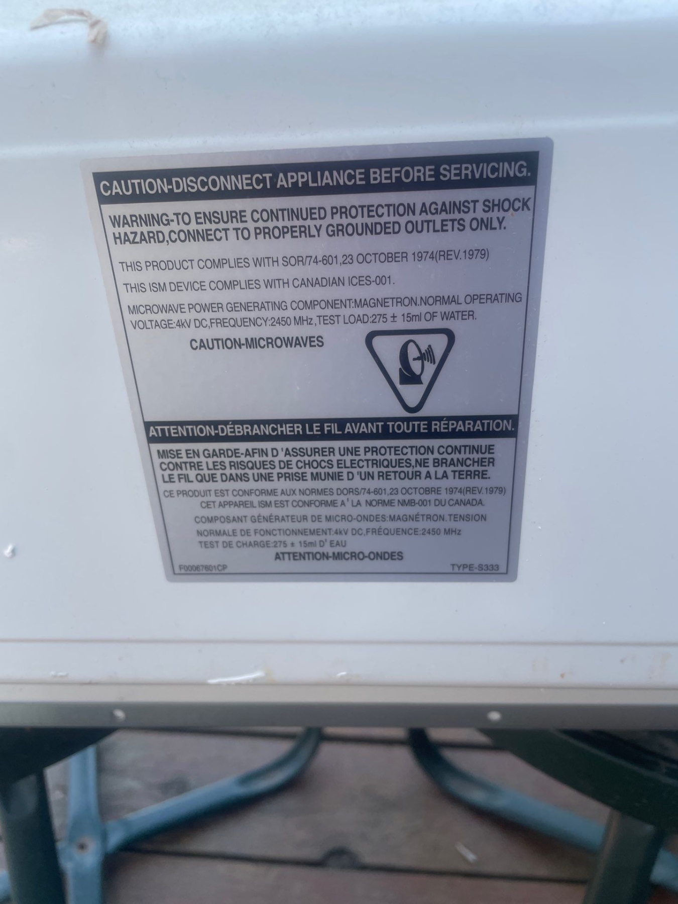 Panasonic Microwave Only 21" Wide x 15" Depth x 12" High
