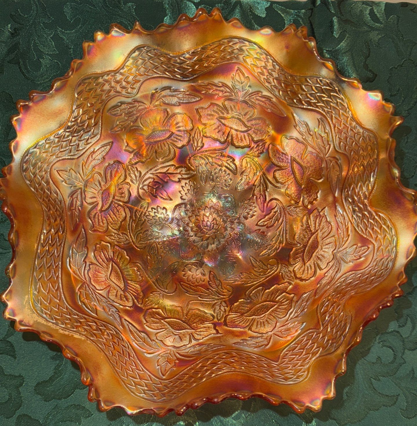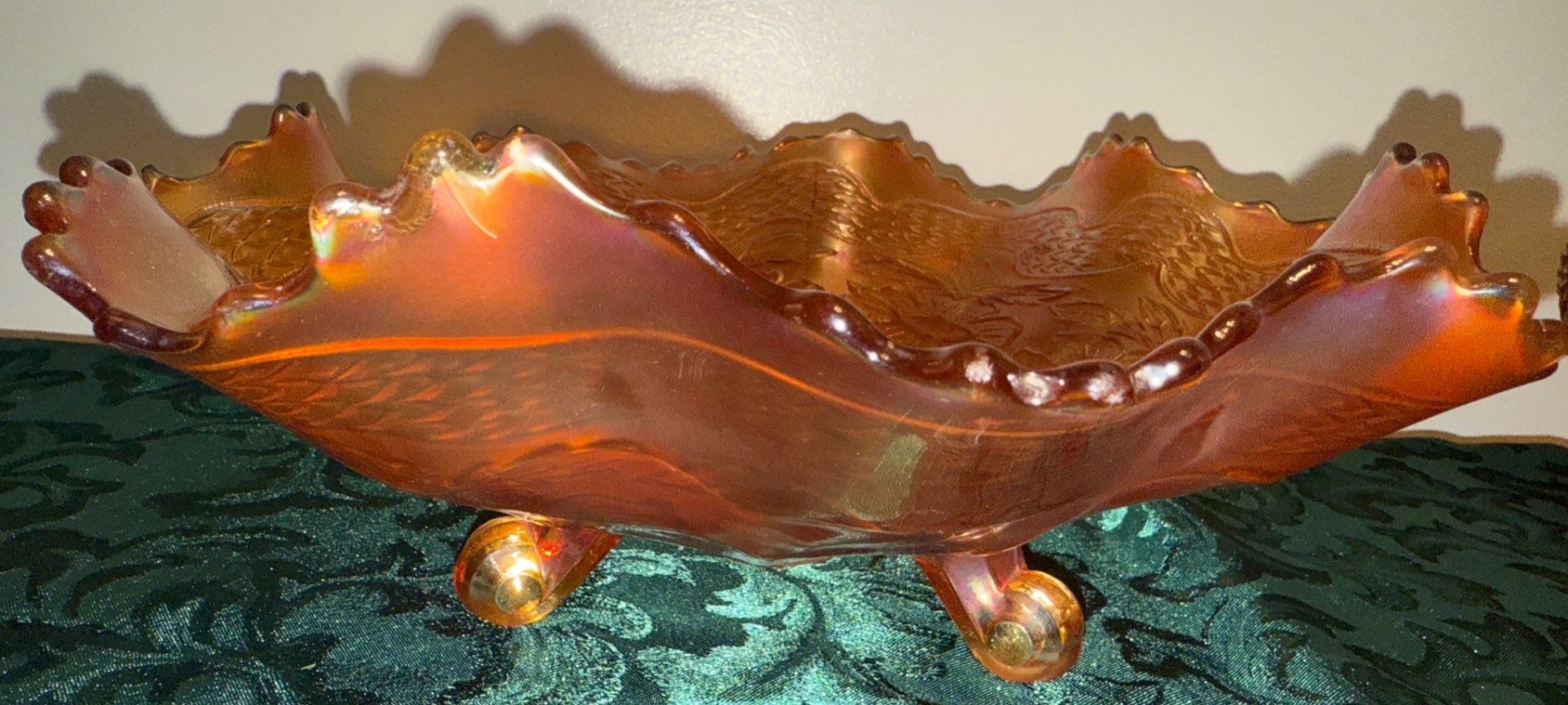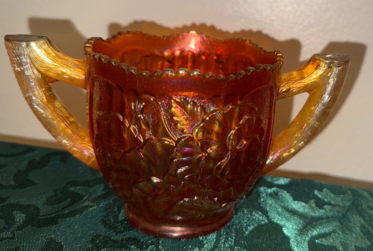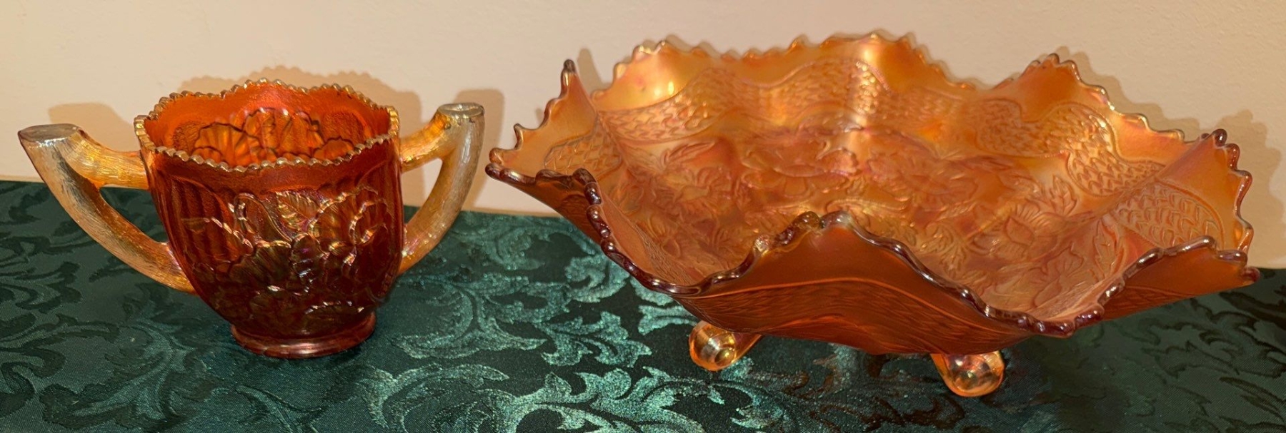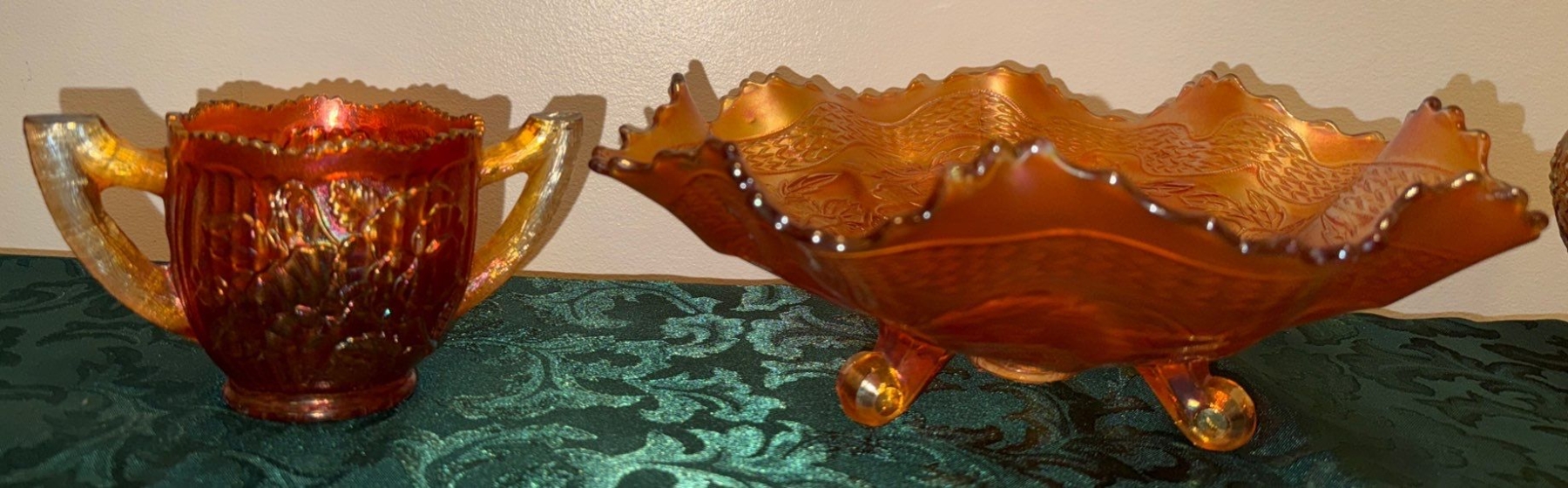 Pansy Sugar Bowl & Two Flowers Footed Bowl Marigold Carnival Glass Fenton +Imperial