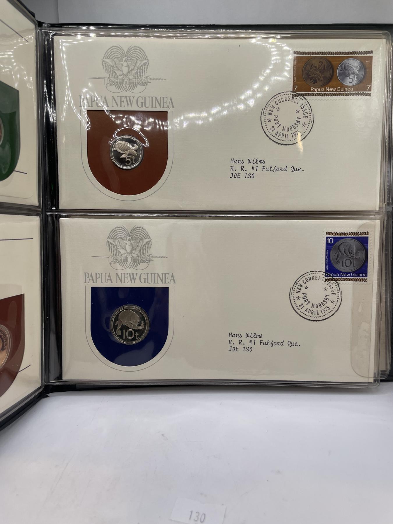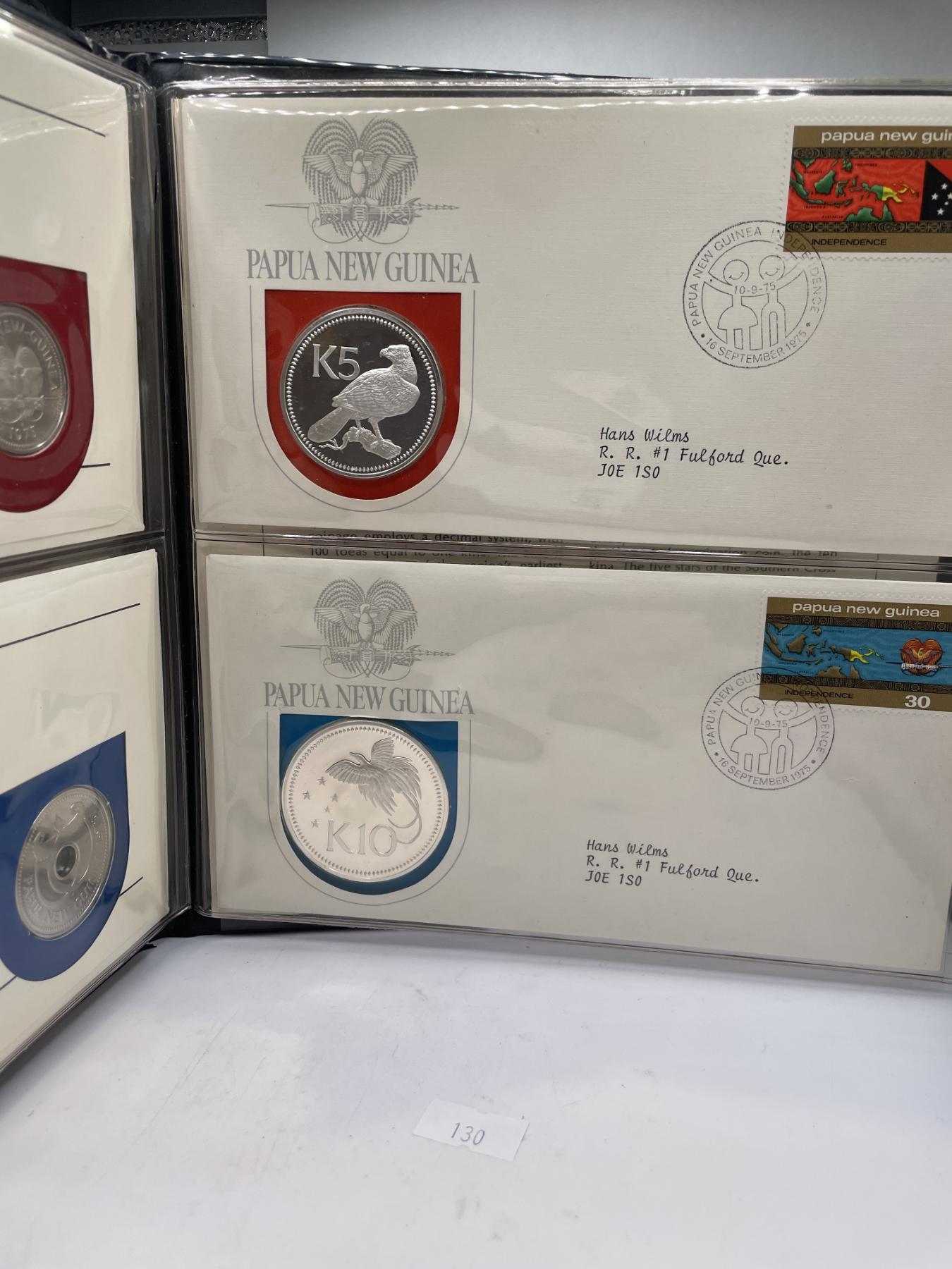 Papua New Guinea 1975 Coins Set and Stamps FDC (with 2 Large .500 Silver Coins)
