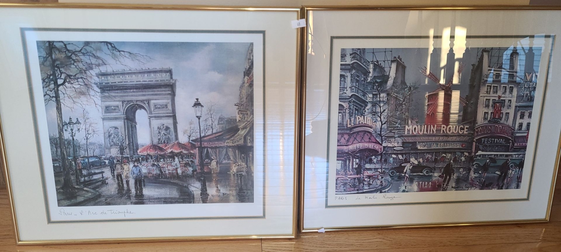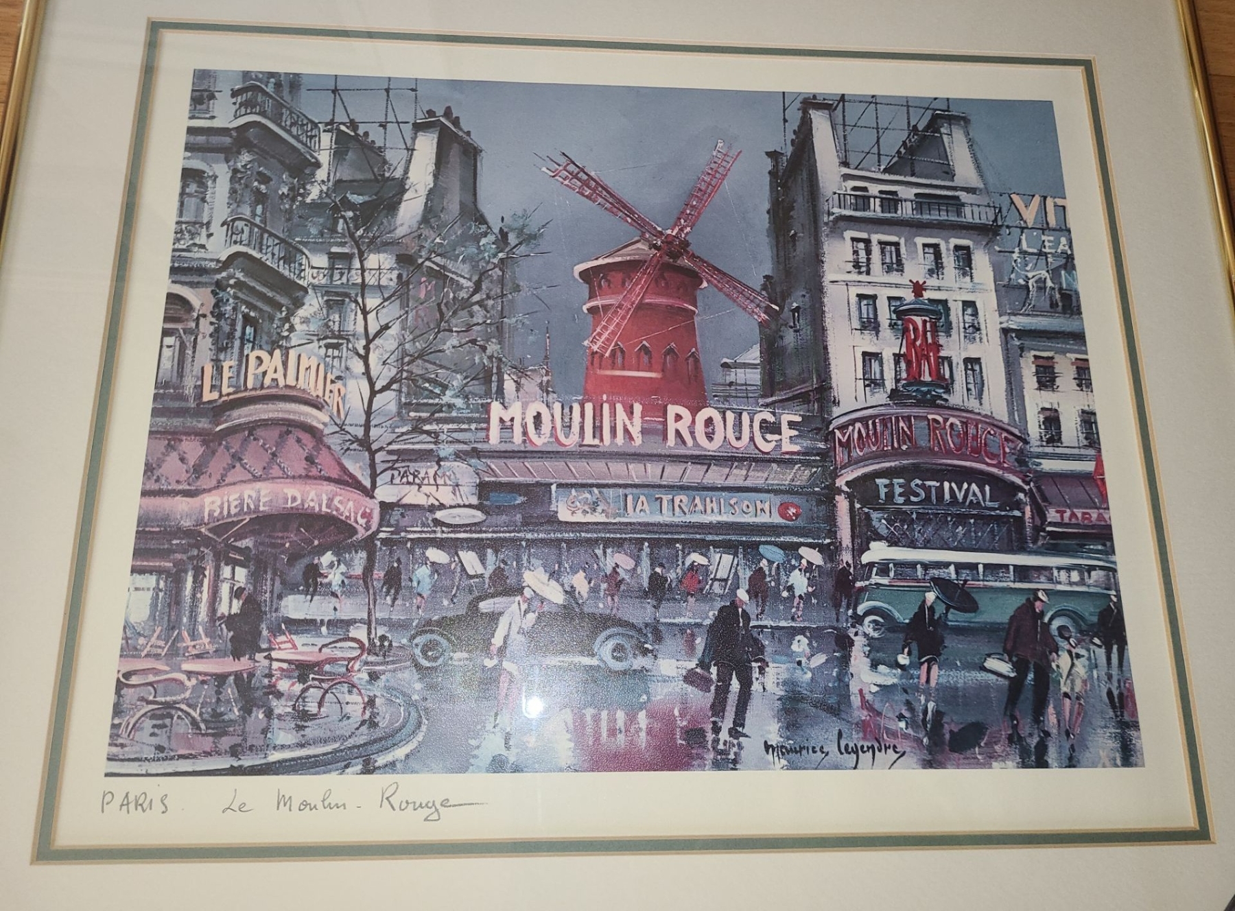 Paris: L'Arc de Triomphe and Le Moulin Rouge Prints 19 X 16, Framed Under Glass