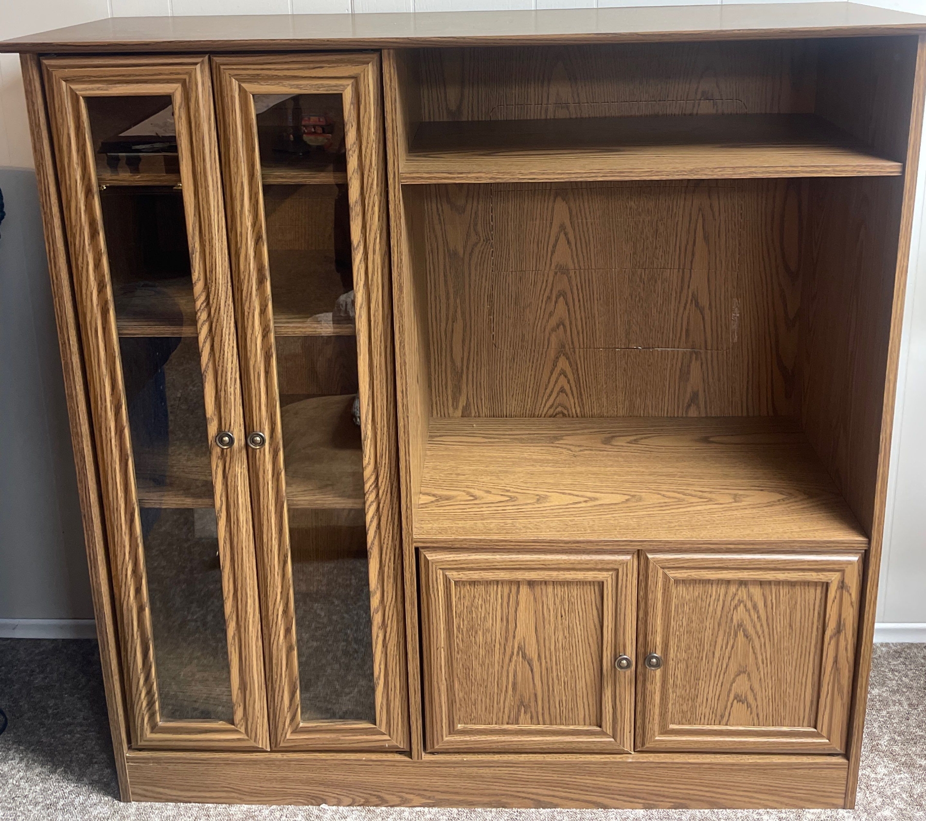 Particle Board Entertainment Stand w/glass cupboards 53"w x 22"d x 58"tall