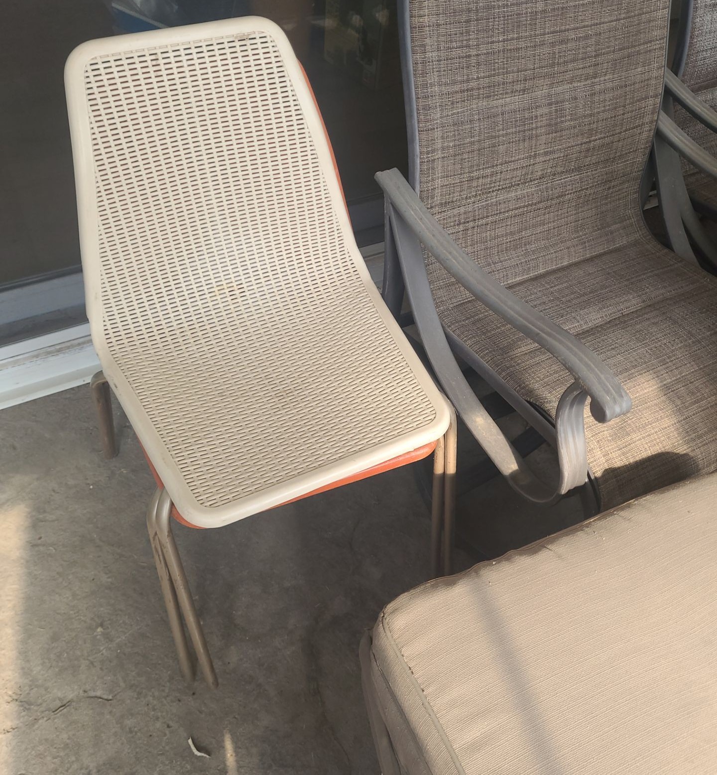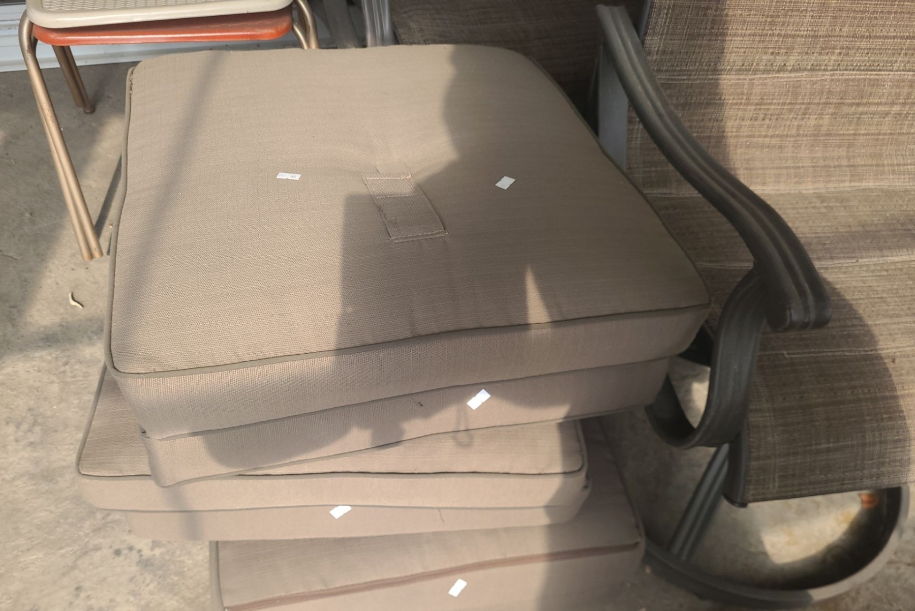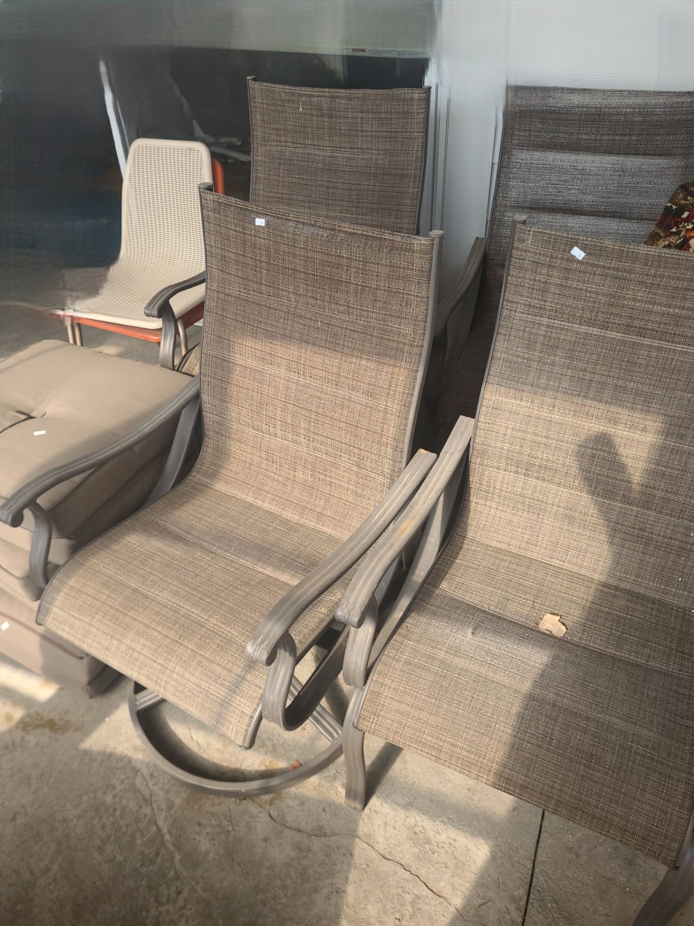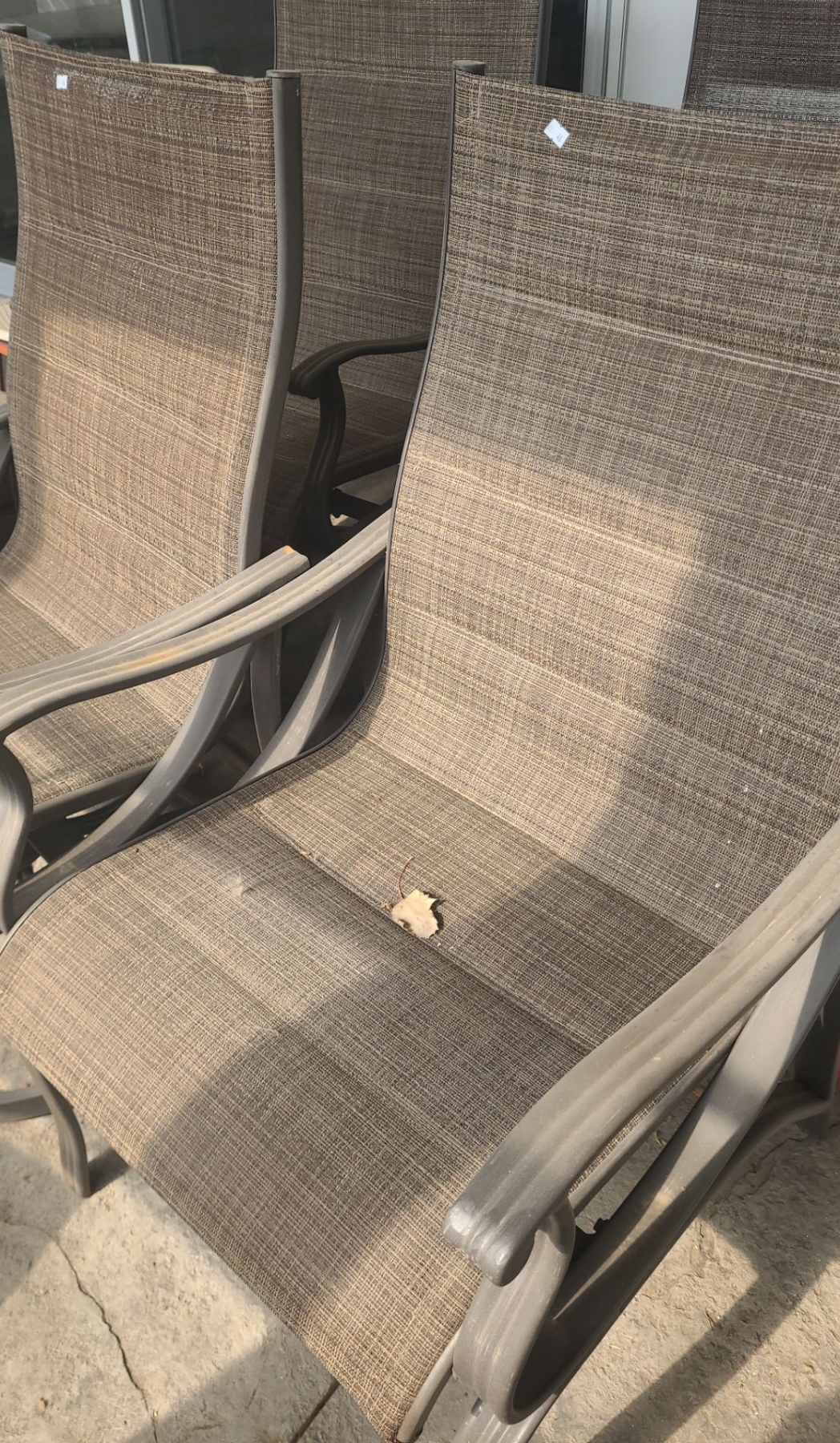 Patio Chairs- Two Standard, Two Rocking: 24 W, 22 D (24 D), 39 T, Unmatched Cushions/ Extra Chairs