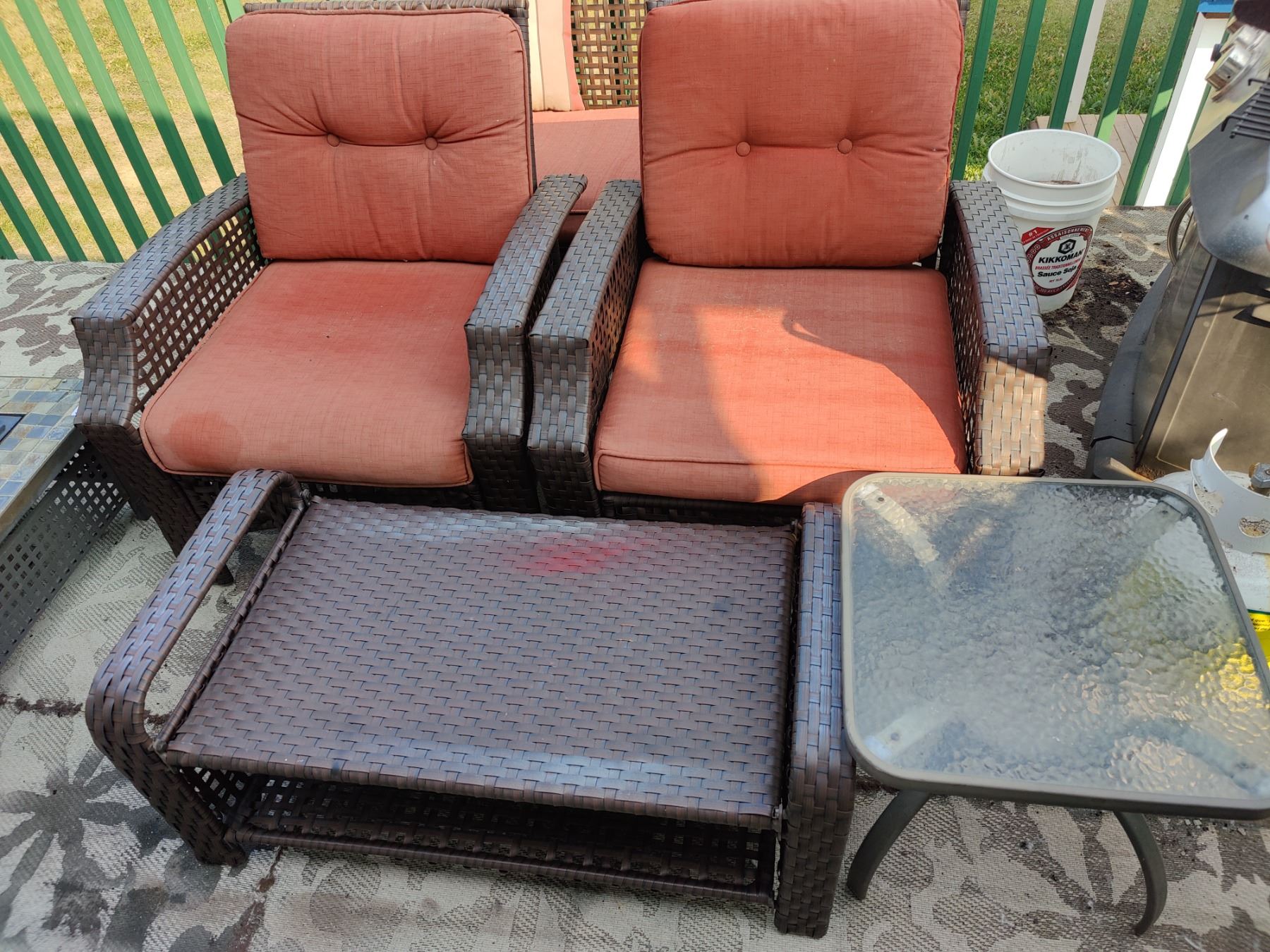 Loveseat, 2 Chairs, Bench and Glass Top Table