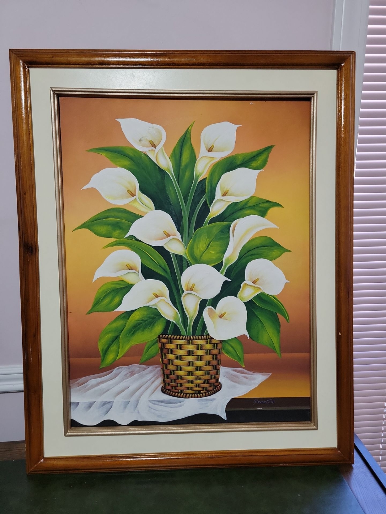 Paucar T. Oz - Calla Lilies 'Alcatraces' - Oil on Canvas Original Art Piece 32x39