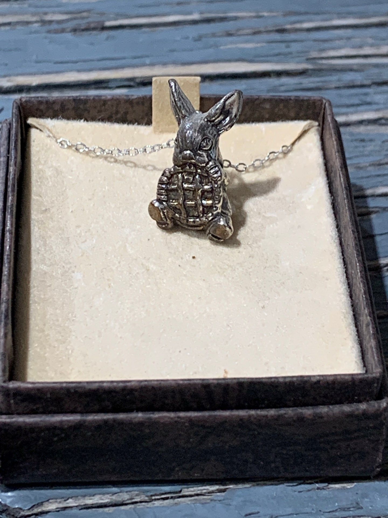 Pen Delfin - Sterling Stamped Chain w/ Pie Rabbit Pendant 8.7g