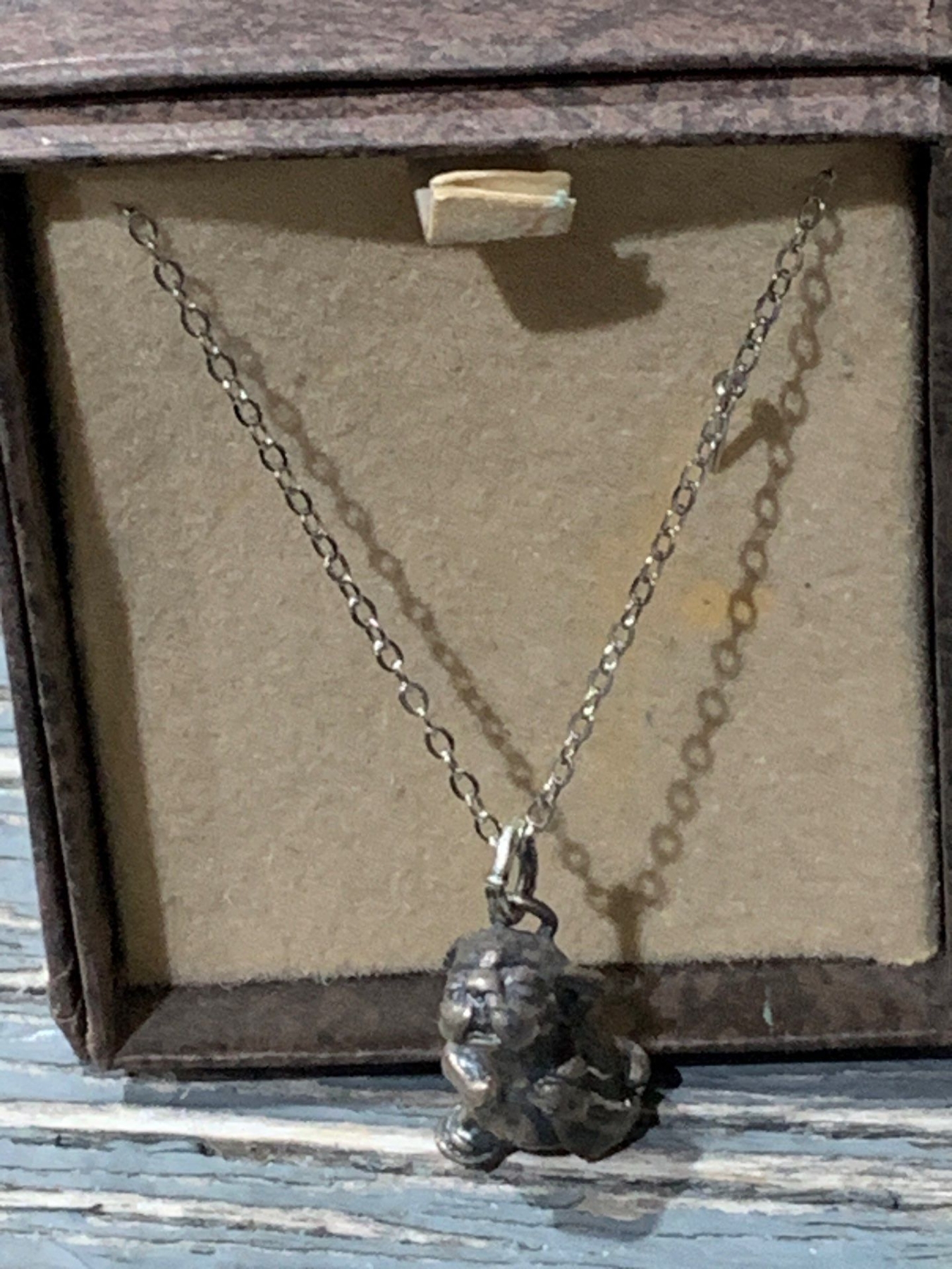 Pen Delfin - Sterling Stamped Chain w/ Rabbit Pendant 6.2g
