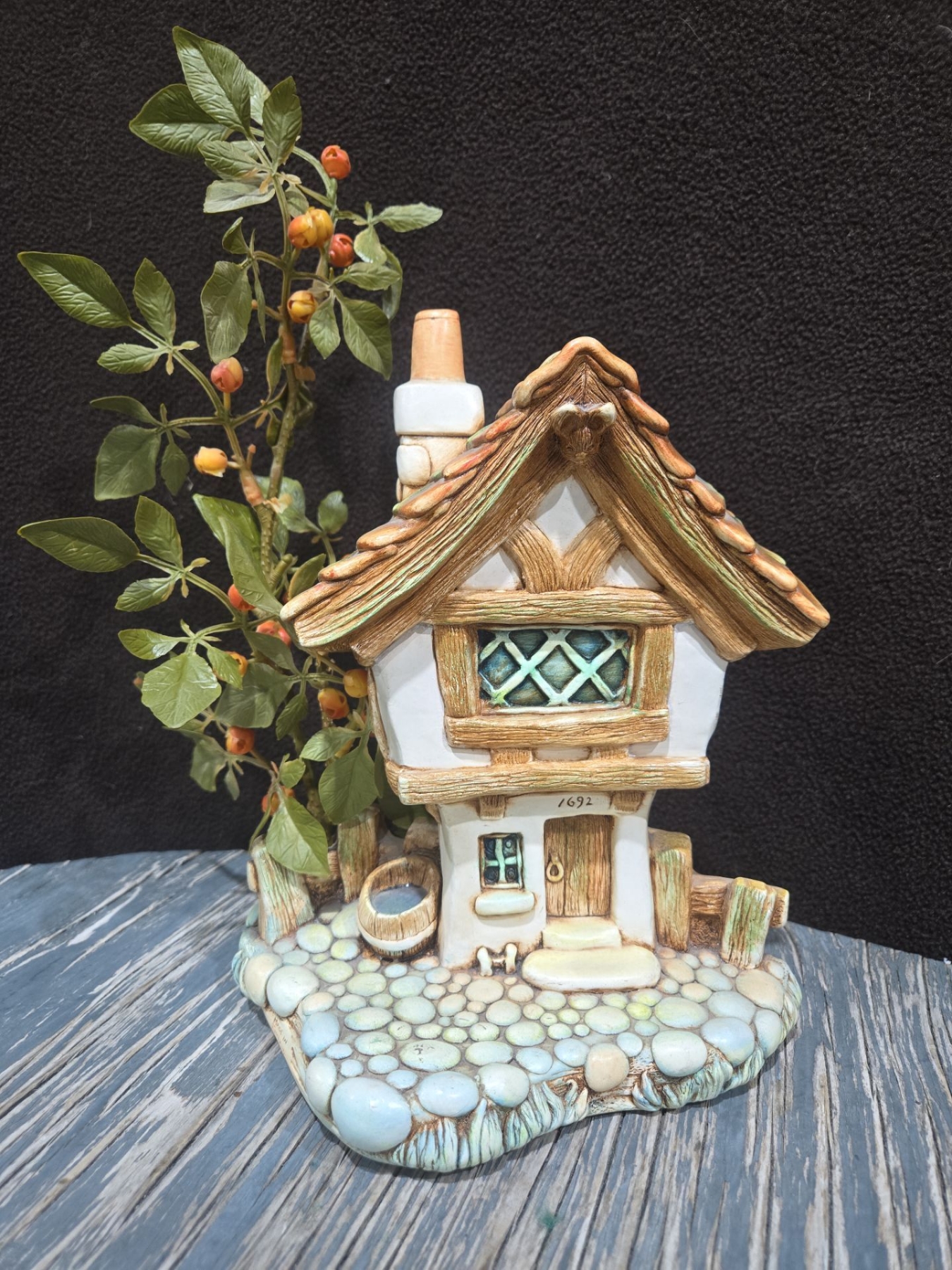 Pendelfin 8"T Cobble Cottage No.952,664 + Fishing Rabbit + Fire Pit