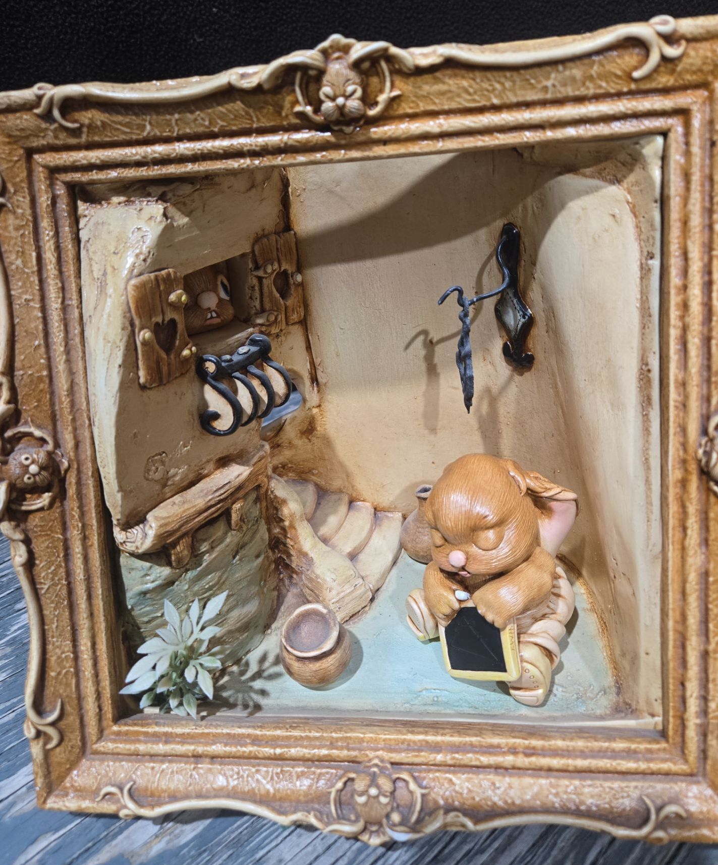Pendelfin 8"T Stair Case Scene + Small Rabbit & 1994 Event Piece