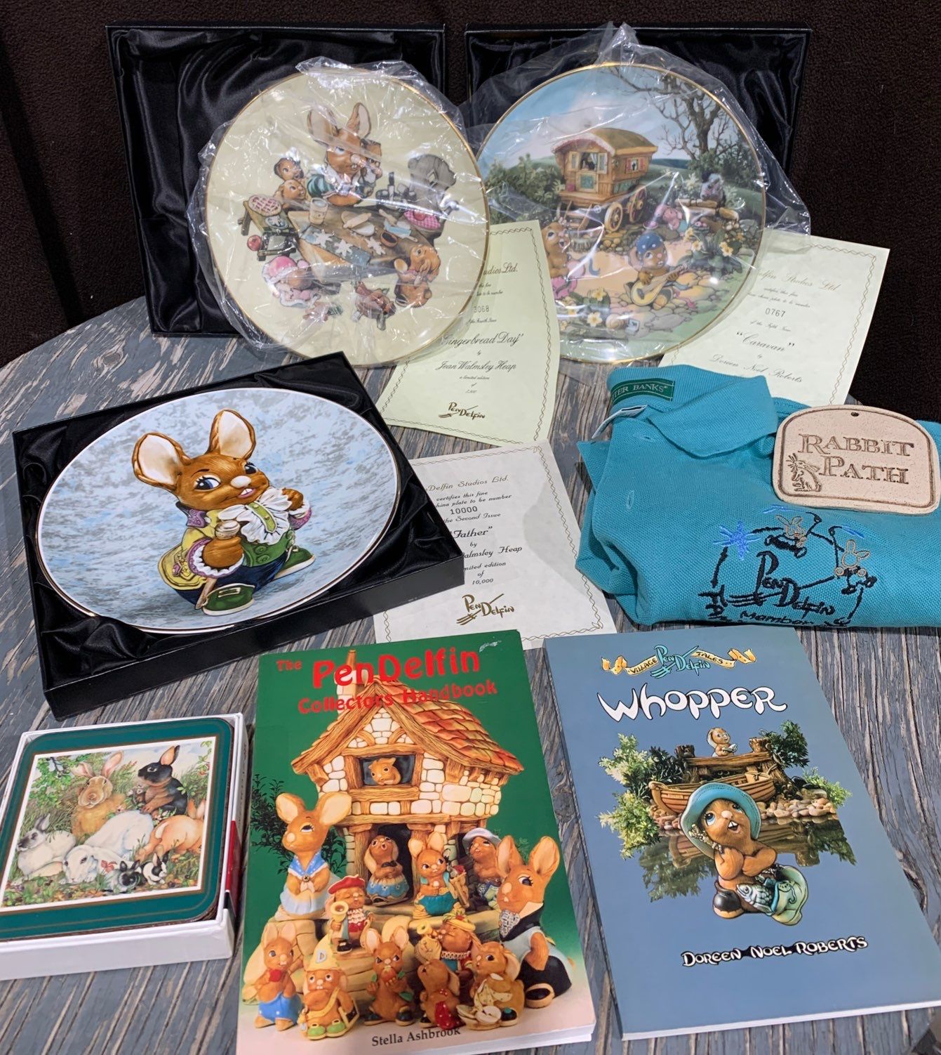 Pendelfin Bone China Plates 'Gingerbread Day', 'Caravan', 'Father'; Shirt (s); Storybook & More