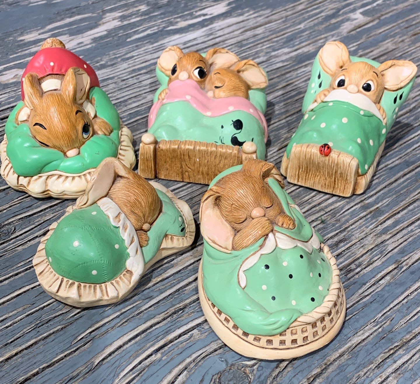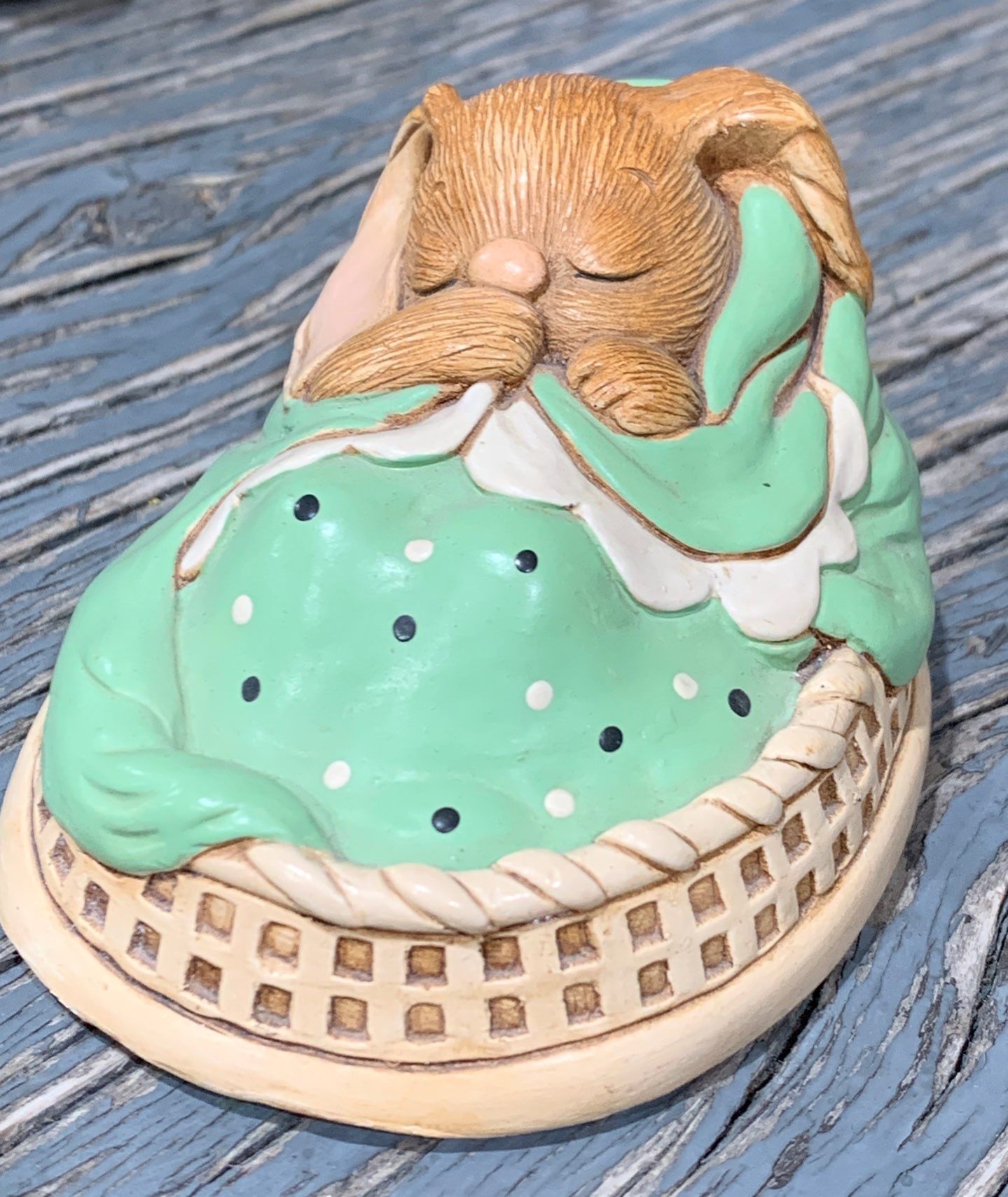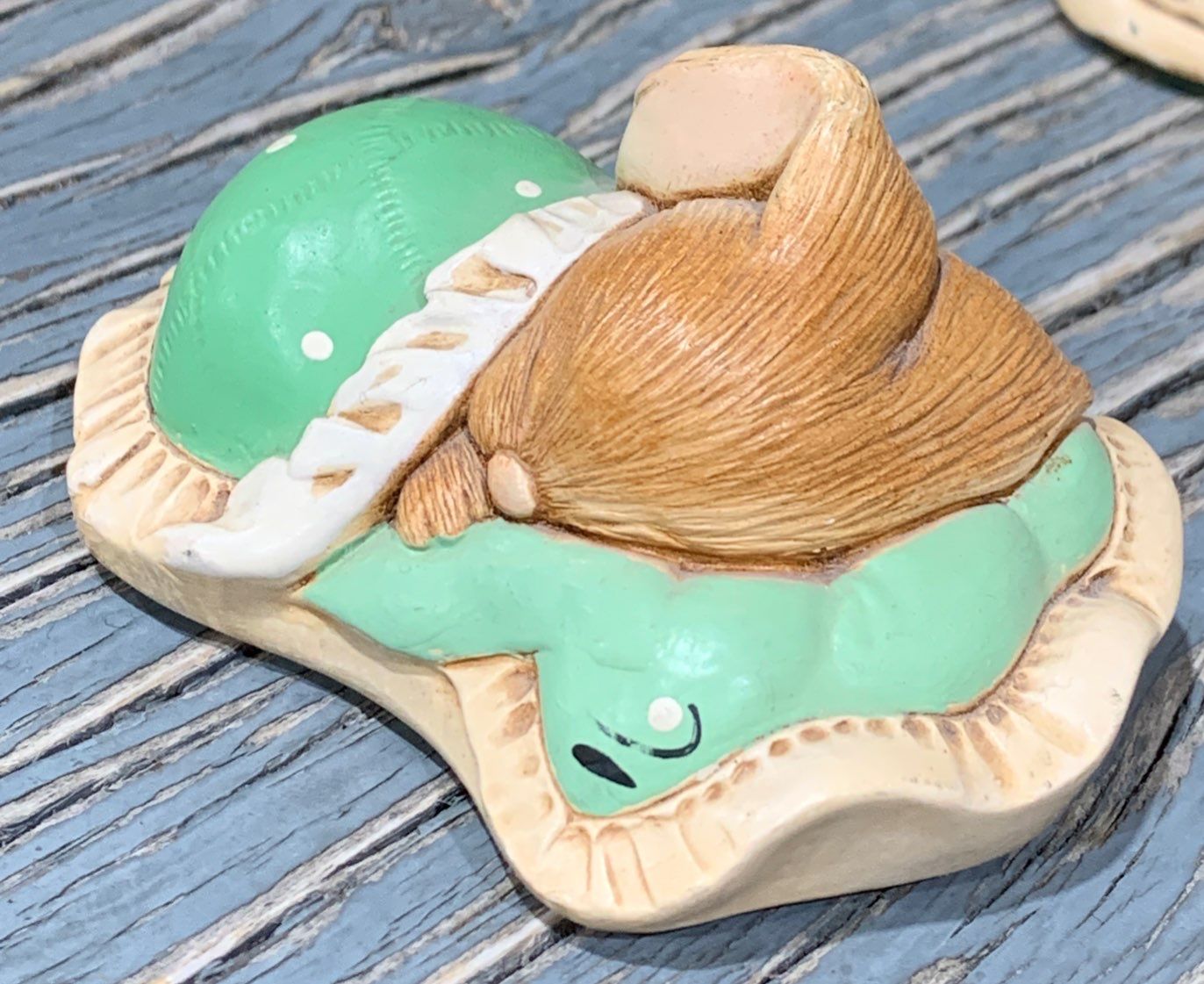 Pendelfin Green Sleeping Rabbits (Largest is 4" Long): 'Snuggles', 'Twins', 'Wakey', 'Dodger'