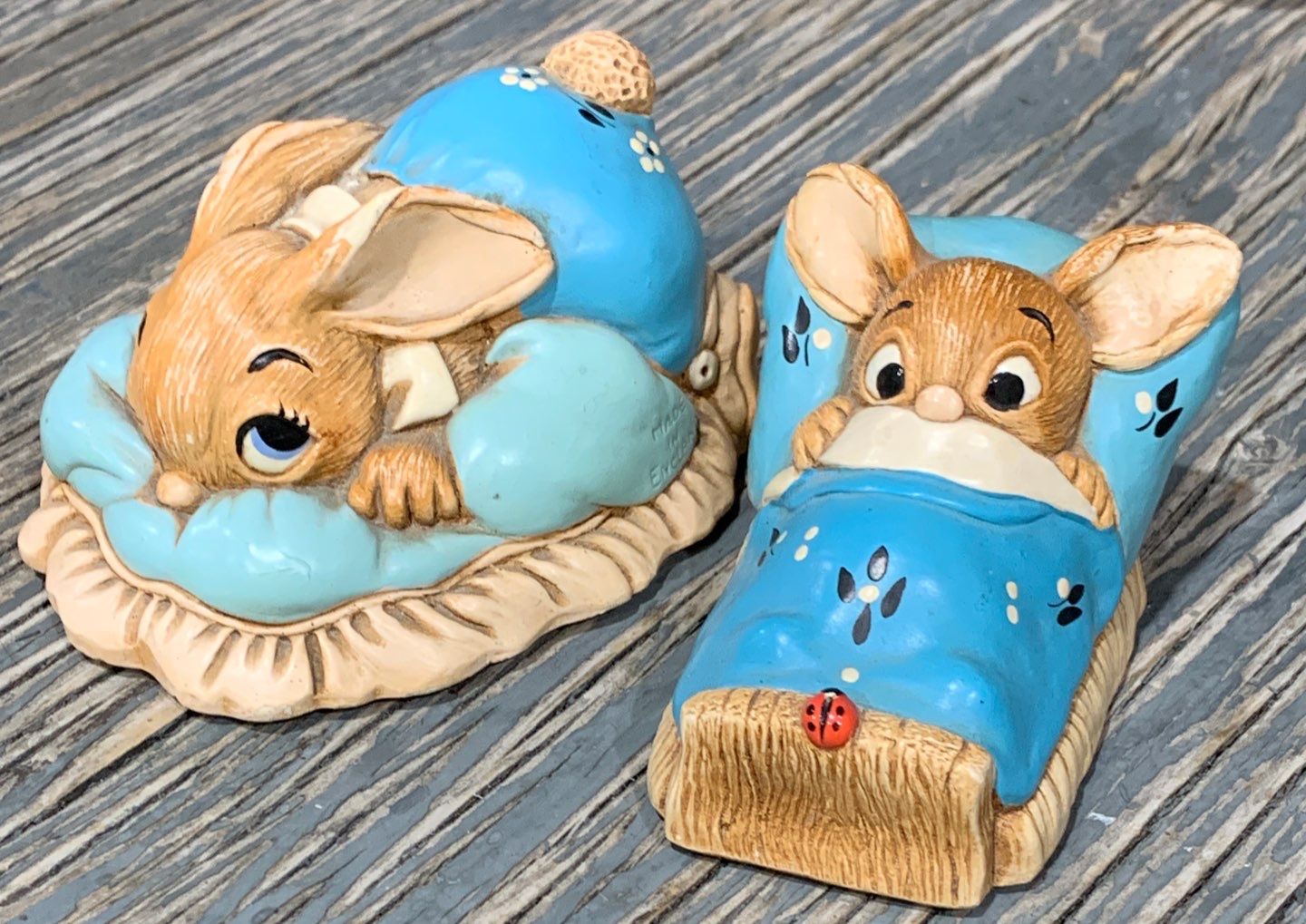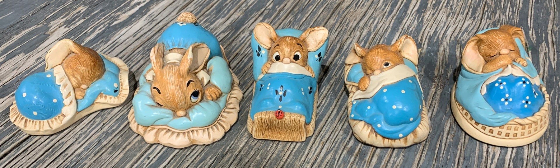 Pendelfin Sleeping Rabbits (Largest is 4" Long): 'Snuggles', 'Wakey', 'Peeps', 'Poppet', 'Dodger'