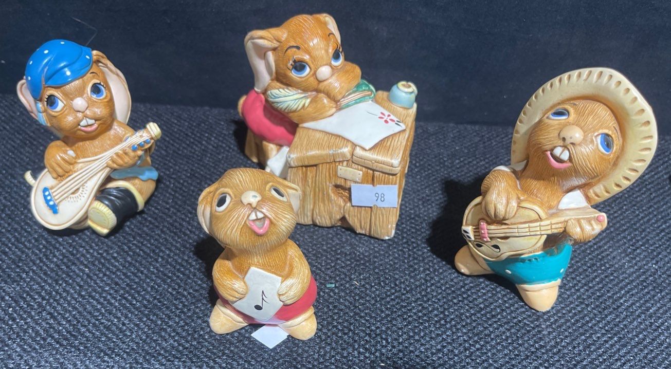 Pendelfin's Music Class Bunnies - Phunk, Bongo, & Rosa Hand Painted Stonecraft