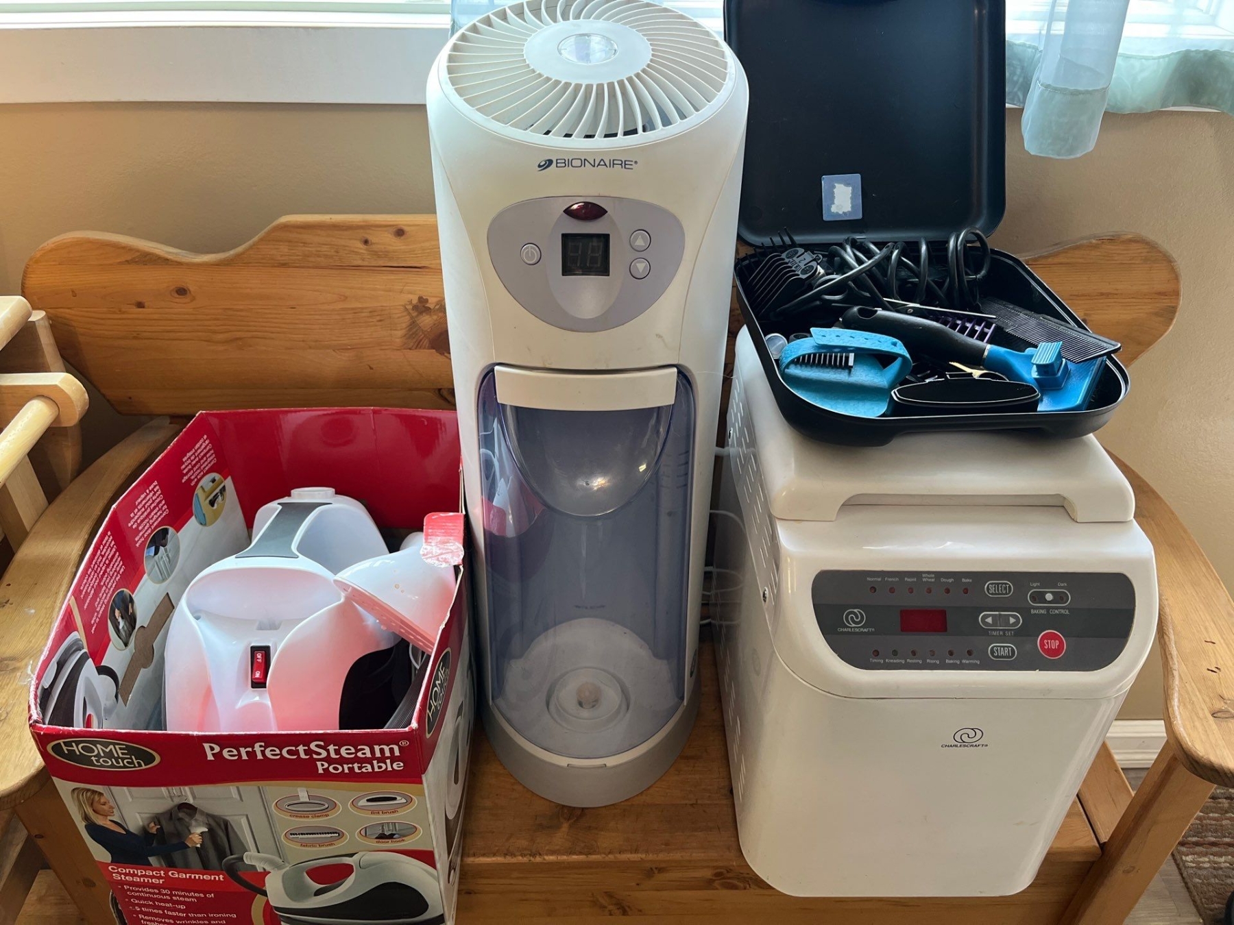 Perfect, steam, portable steamer, bread, maker, dog, grooming kit, and a Bonair humidifier. Portable