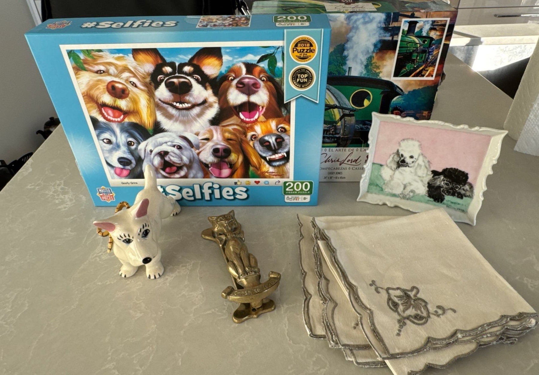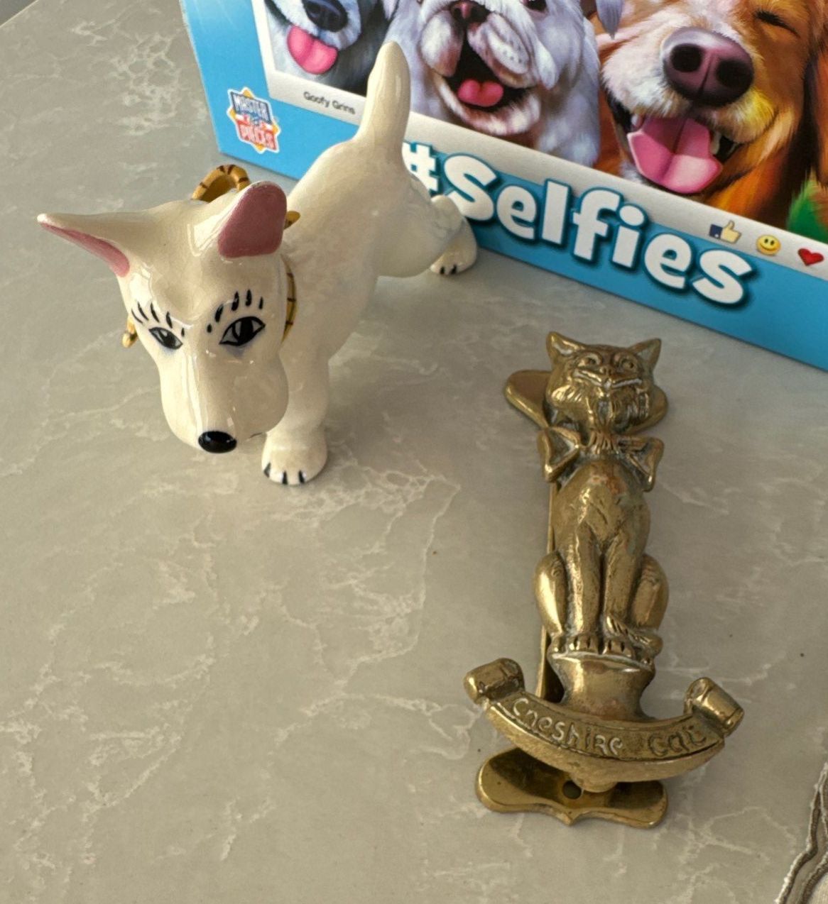Pet Pack - Solid Brass Cheshire Cat Door Knocker K9 Figurine w/ Poodle Pic Puzzles & more