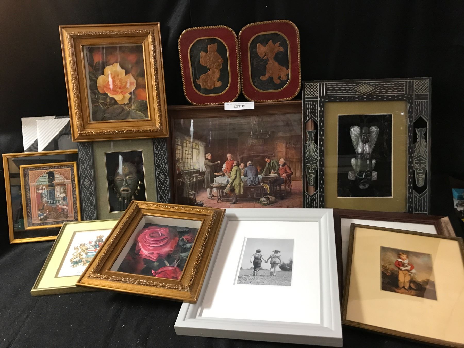 Peter Elzinga The Arms of Alberta, 2 Rose 3D Art, Framed Picture from India, Pair of Copper Puppy Wall Art, 2 Picture Frames & 2 Framed African Inspired Framed Art,