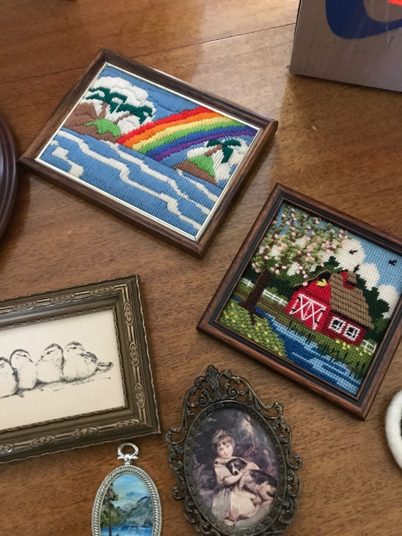 Petit Point Framed Pictures, Cross Beaded Needle Point & Assorted Framed Pictures