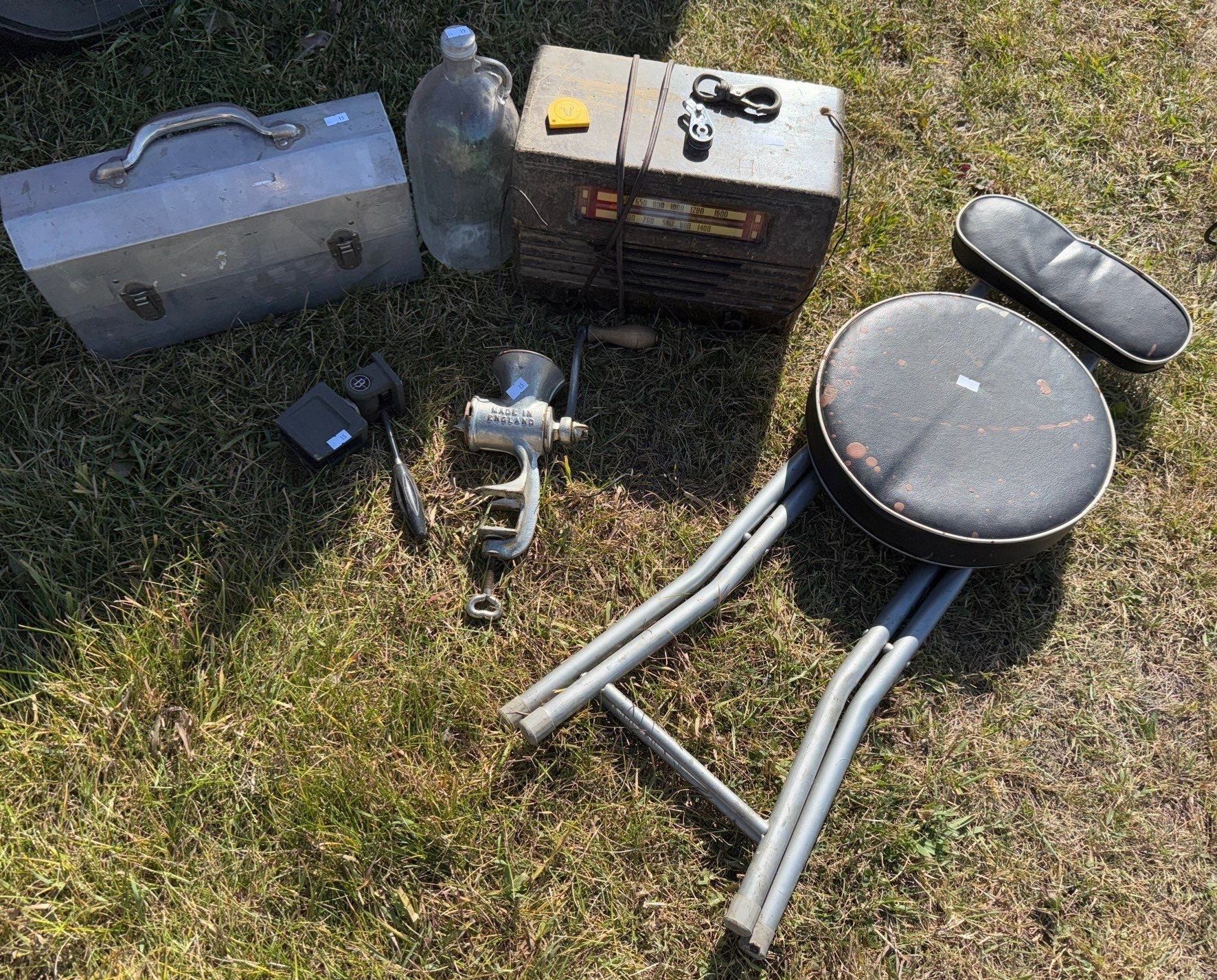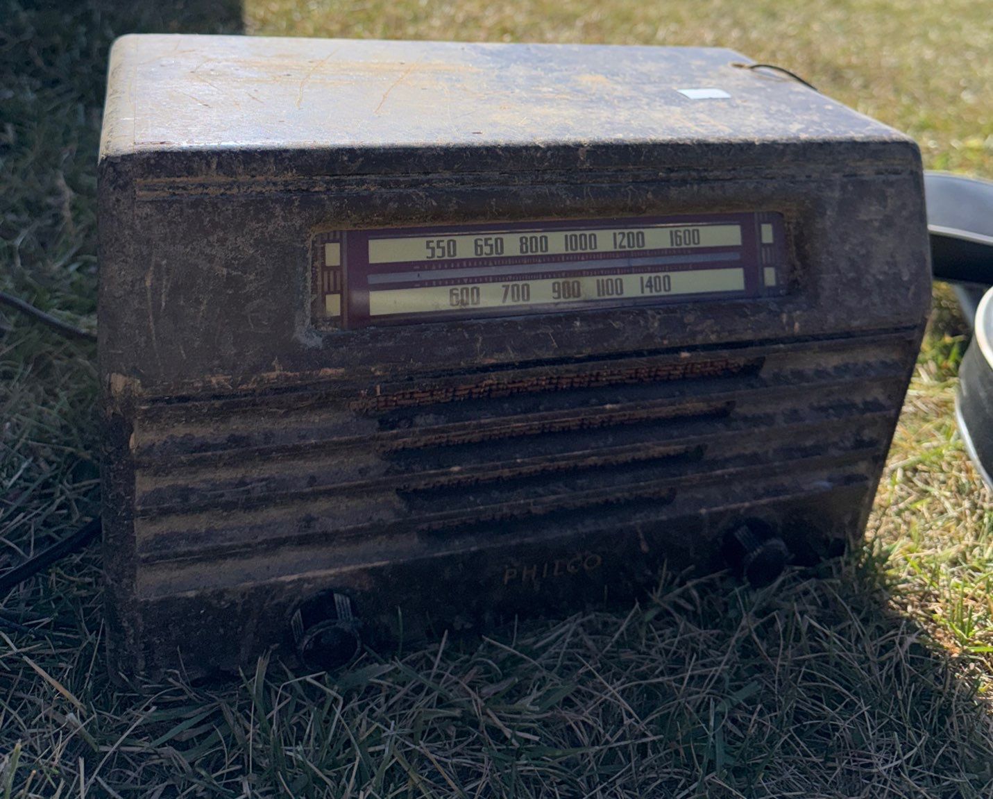 Philco Stereo needs rewire metal antique box foldable chair and more