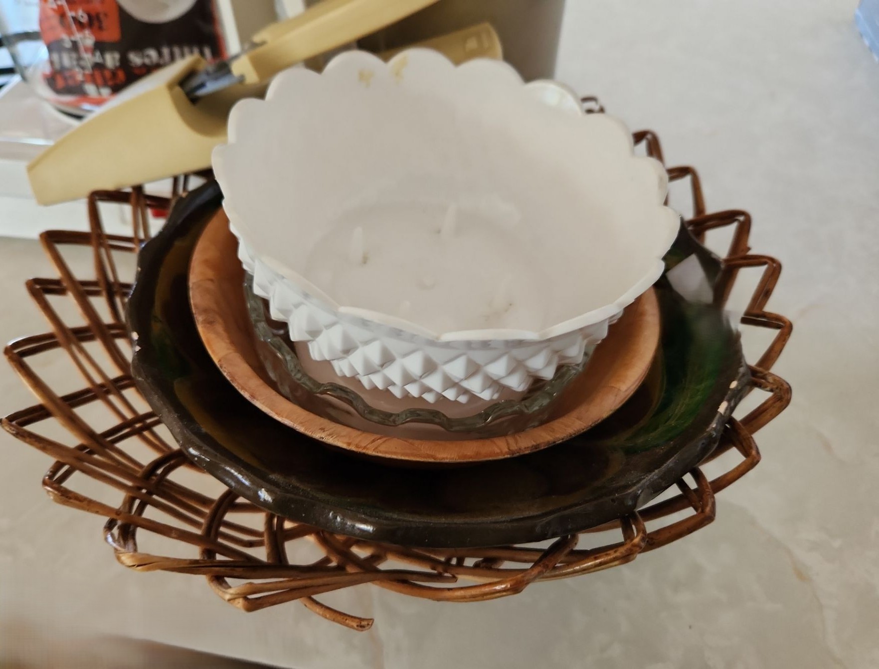 White Plastic Bowl for Flower Arrangements, Not Fenton