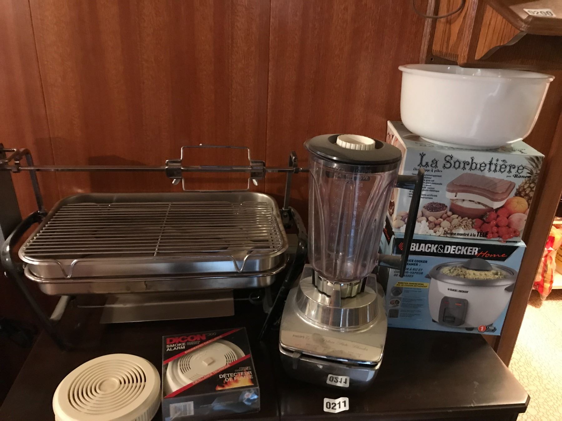 Phillis Blender, Rotissiere, Rice Cooker, Ronco Ice Cream Maker, & Smoke Detectors