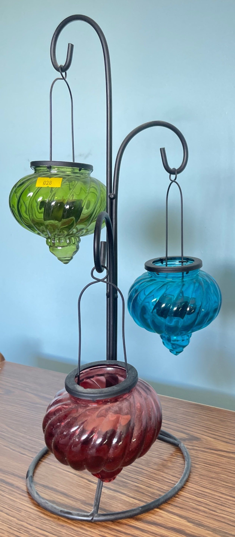 Pier 1 Glass Hanging Three Tea Lights Black Metal Candle Holder By Maria Crane
