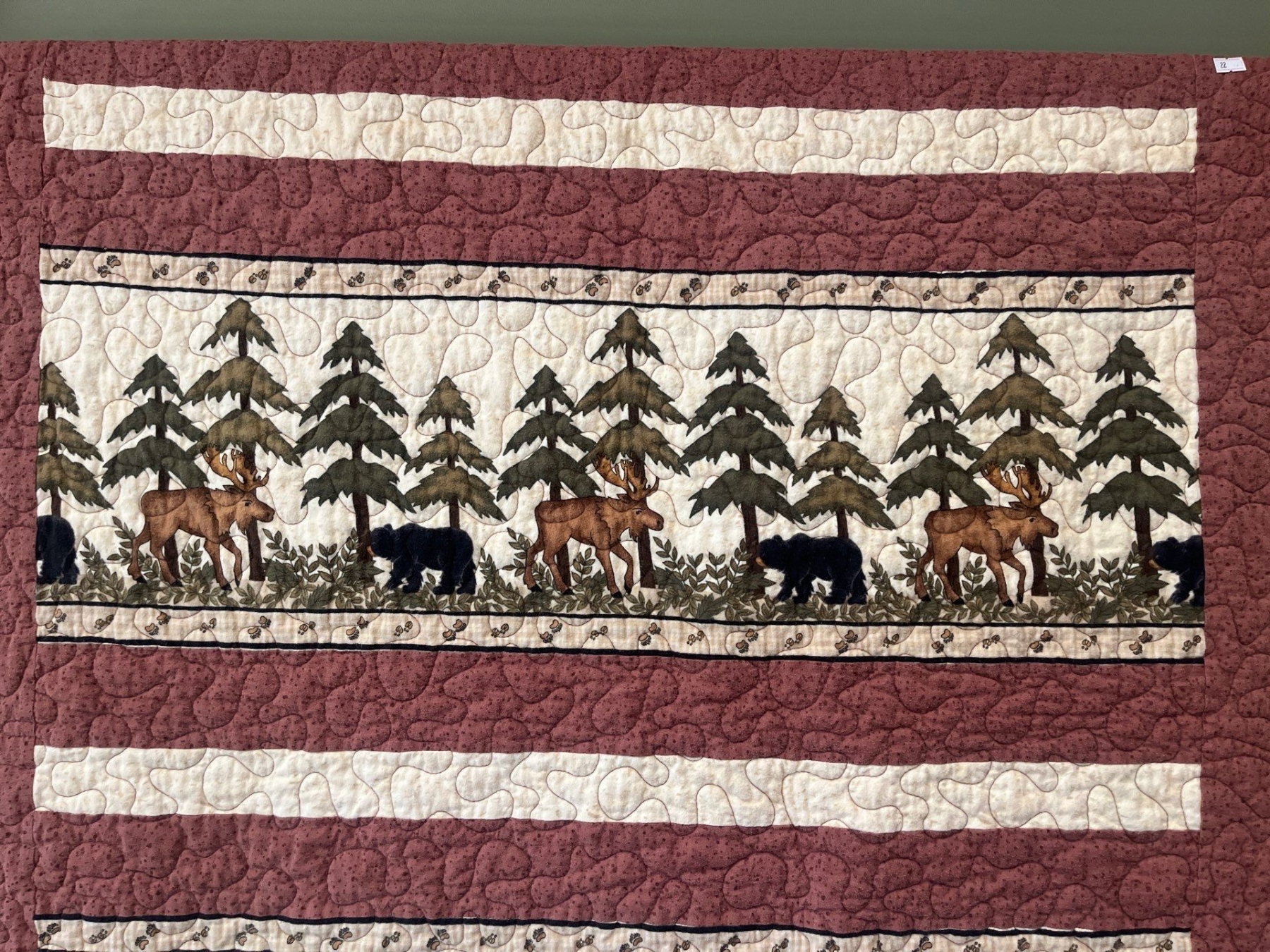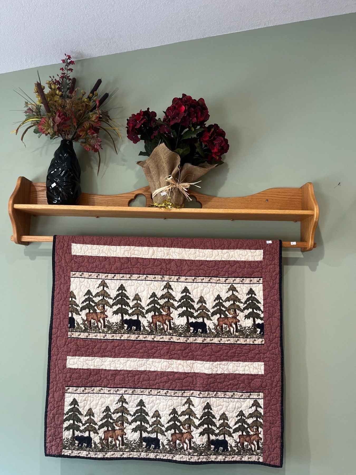 Pine Quilt Holder With lovely Quilt & Flower Vase