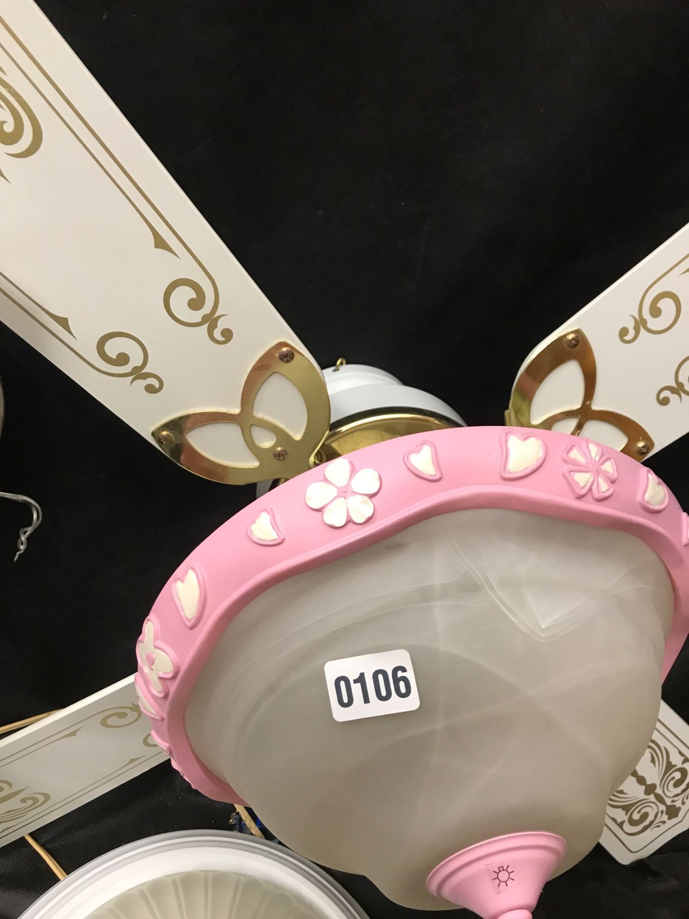Pink Children's Ceiling Fan, Mid Century Modern 3 Light Tension Pole and Ceiling Light