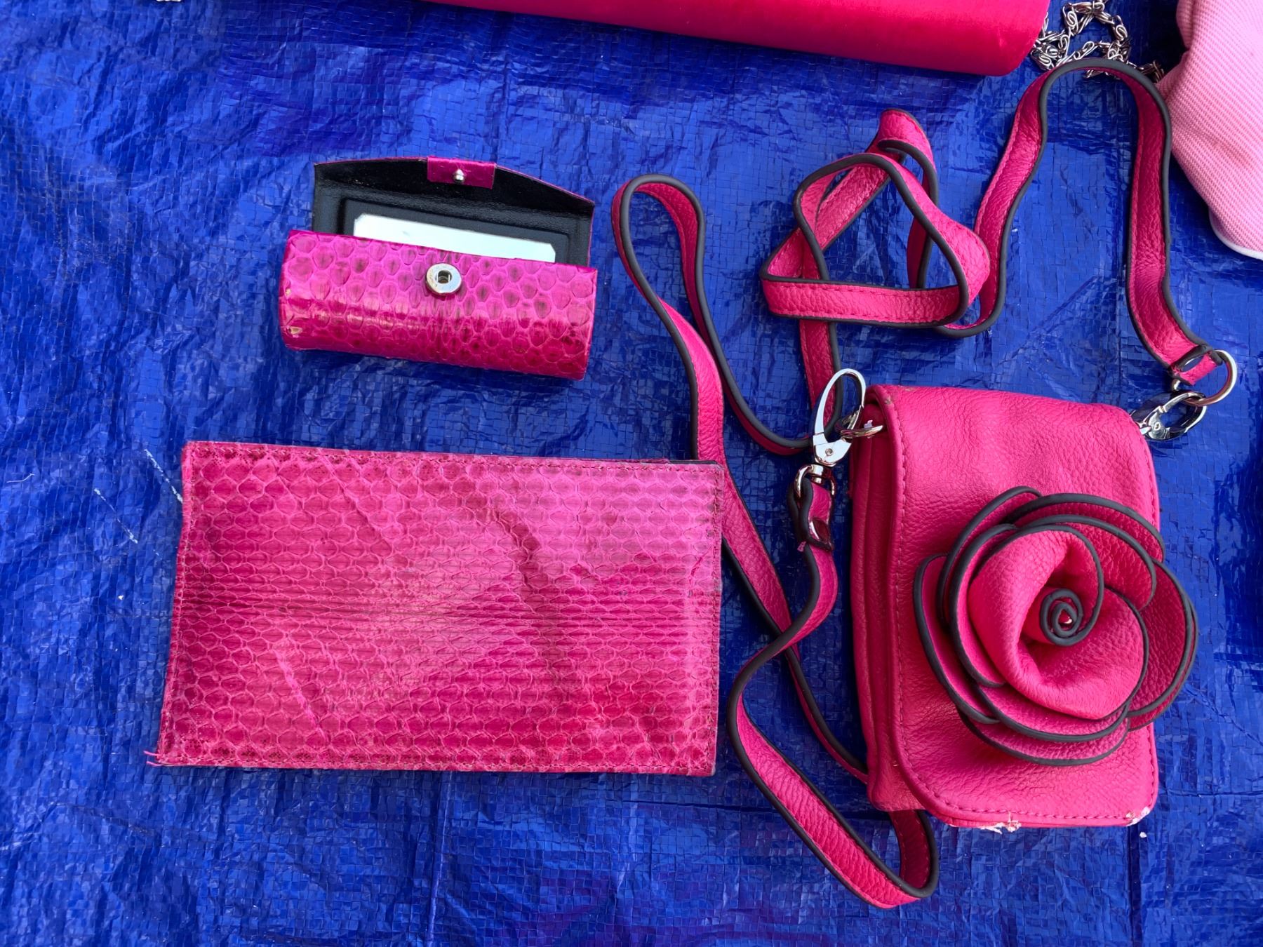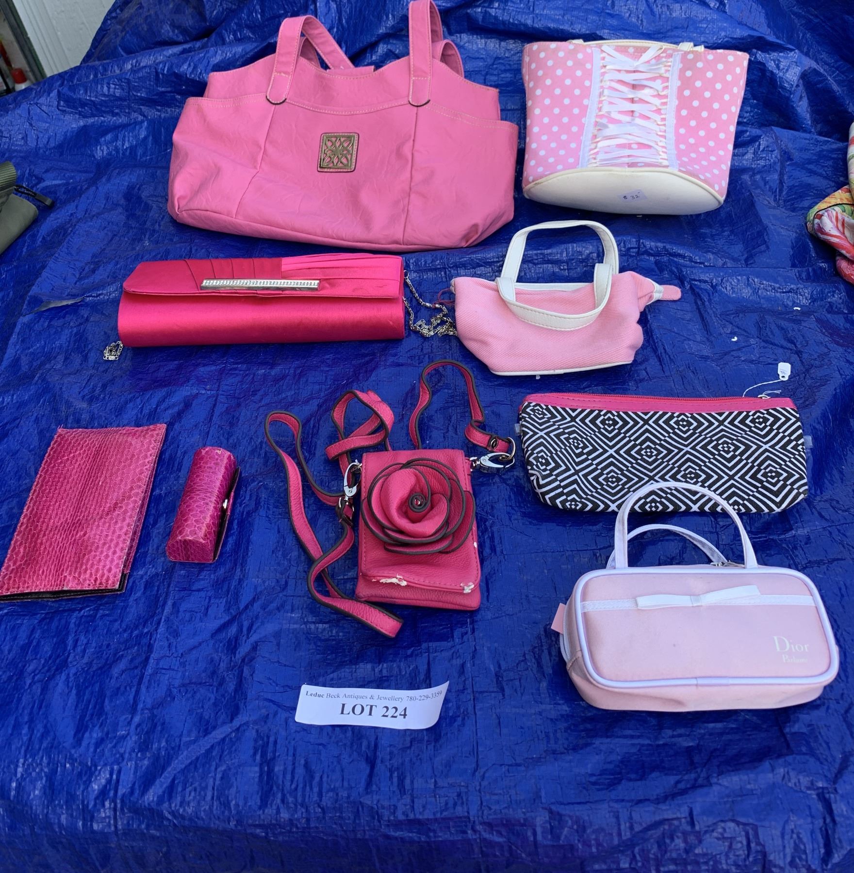 Pink Lipstick Case, Sun-glass Holder, Makeup Bag, Cell Phone Crossover & Asst Pink Purses