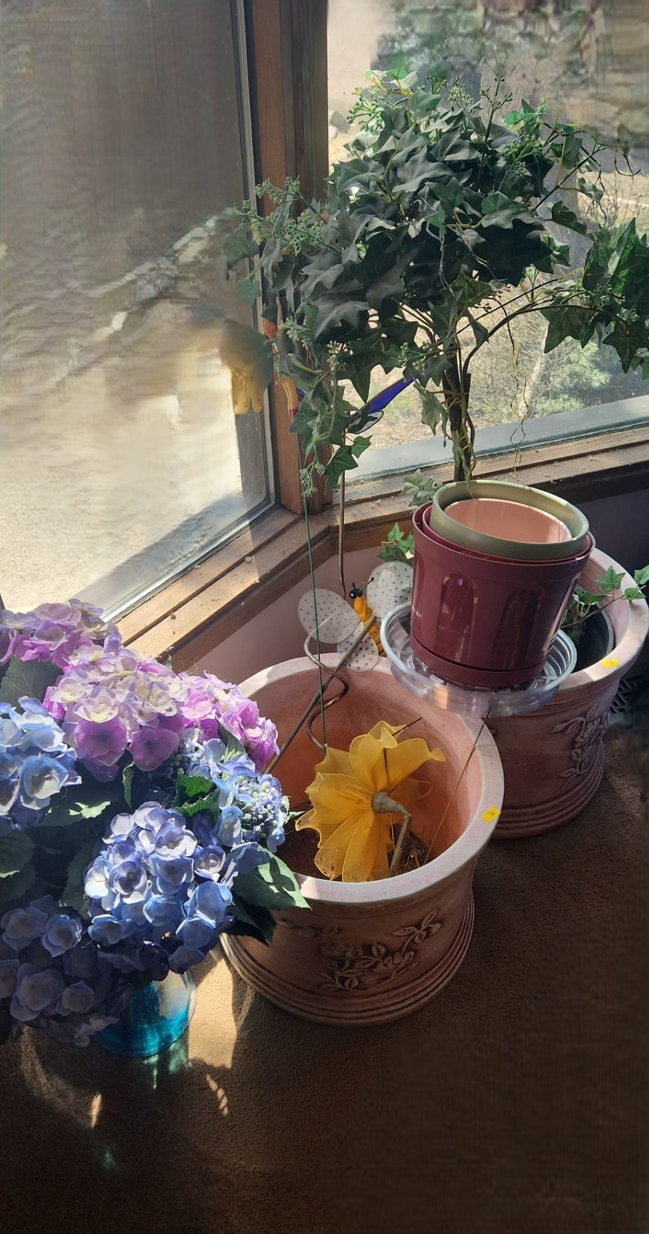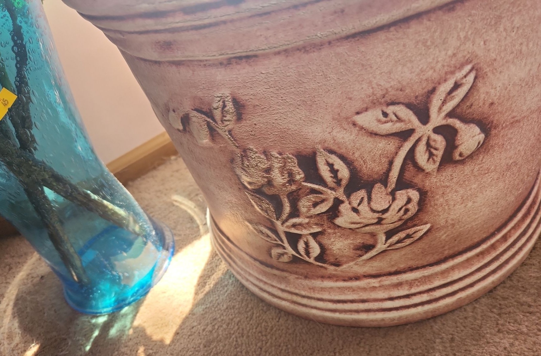 Planters w/ Rose Design 15" Diameter, 12 T, Blue Vase 13 T, Small Pots, Faux Flowers/ Ivy and More!