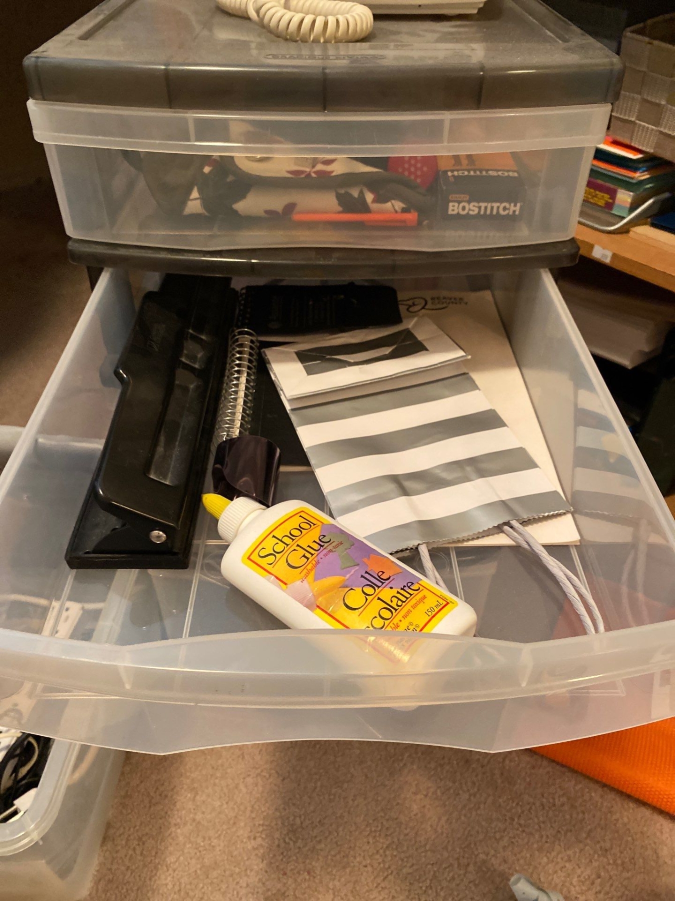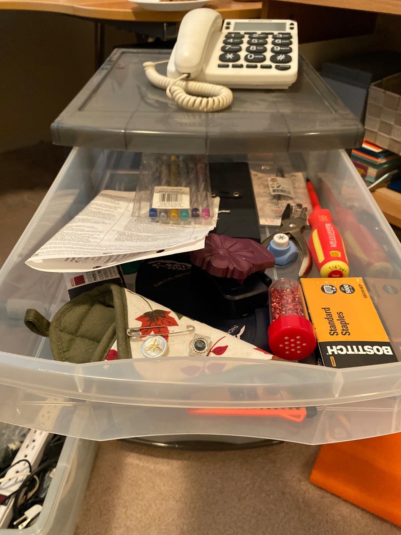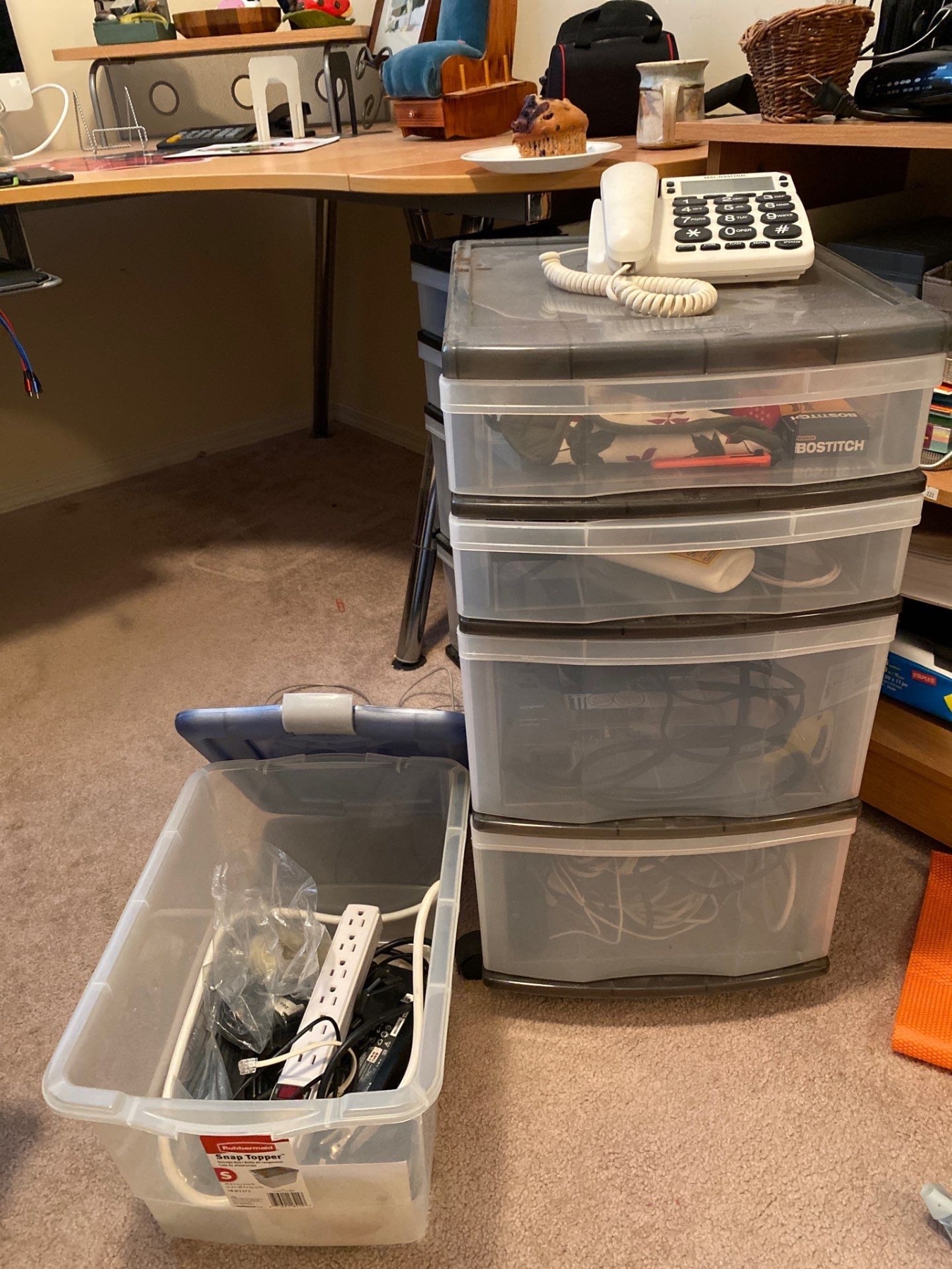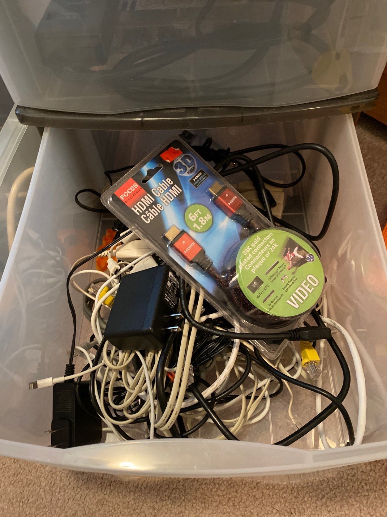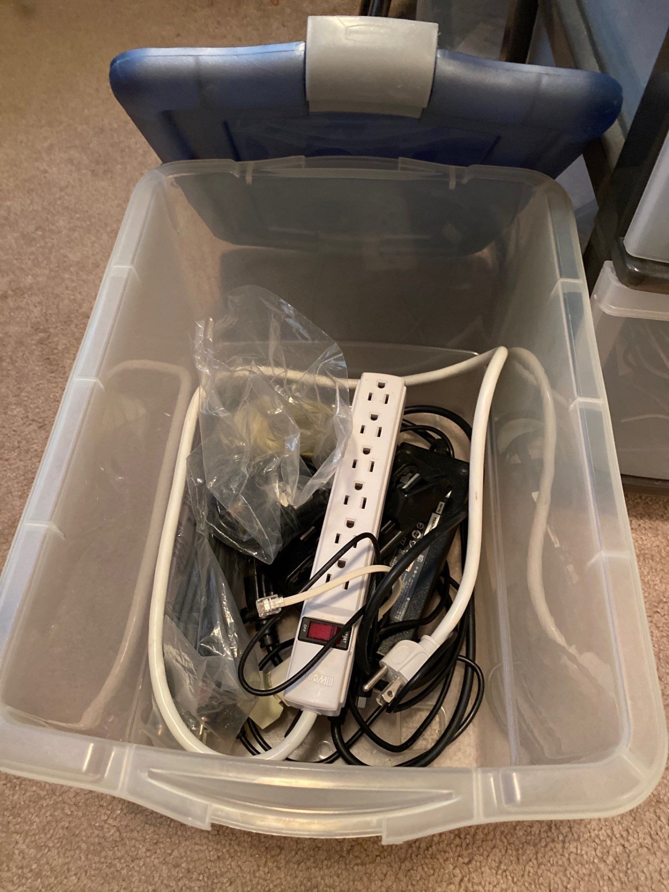 Plastic Storage Including Contents 13W x 16D x 24T Cables Telephone Office Supplies