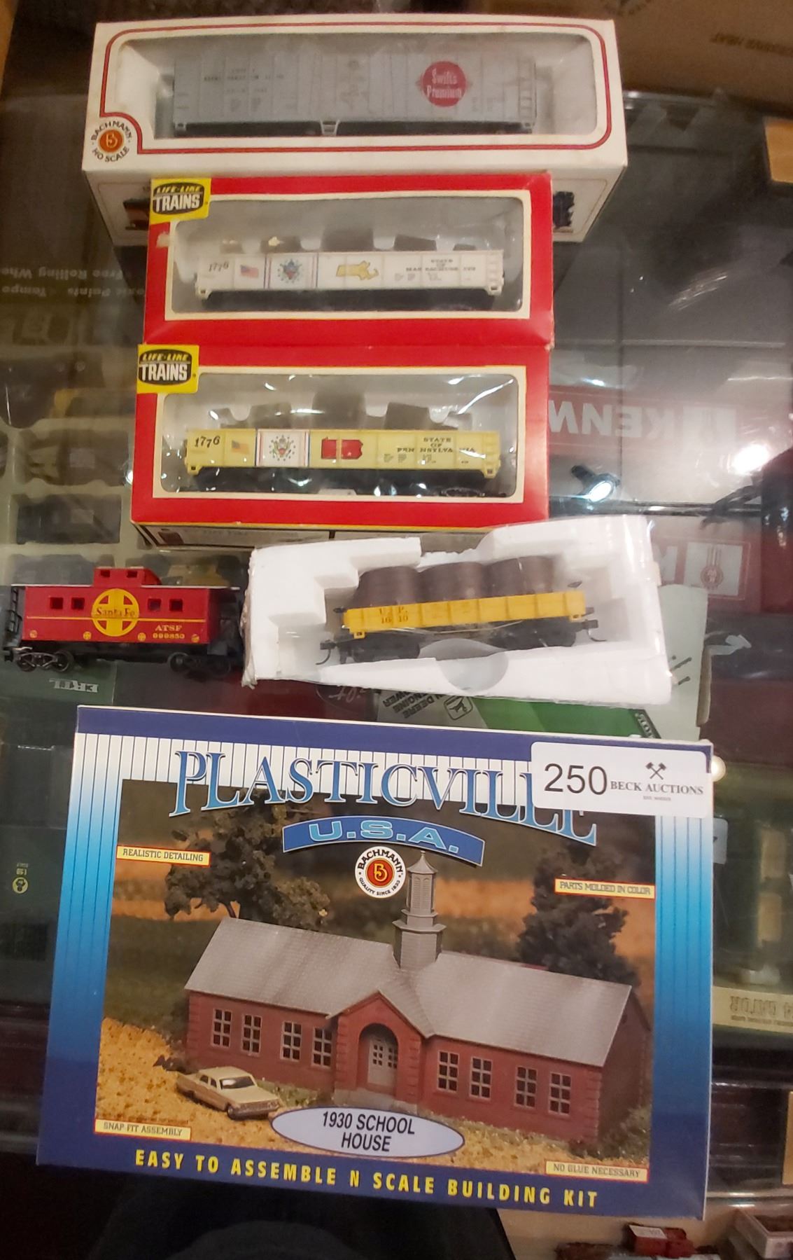 Plasticville 1930 School House Plus Train Box Cars Lot
