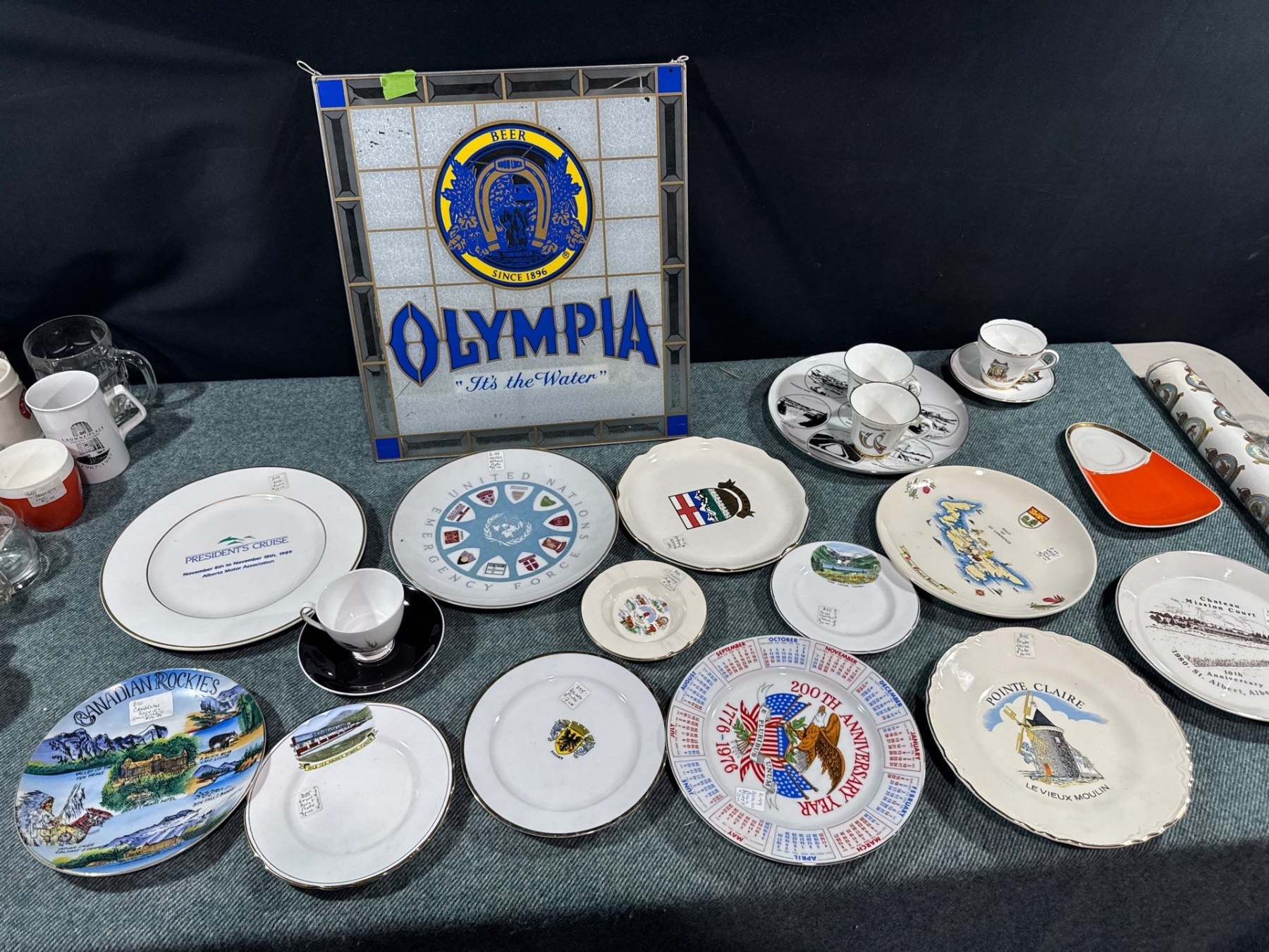 Plates, Tea Cup Sets, & Olympia Beer Sign
