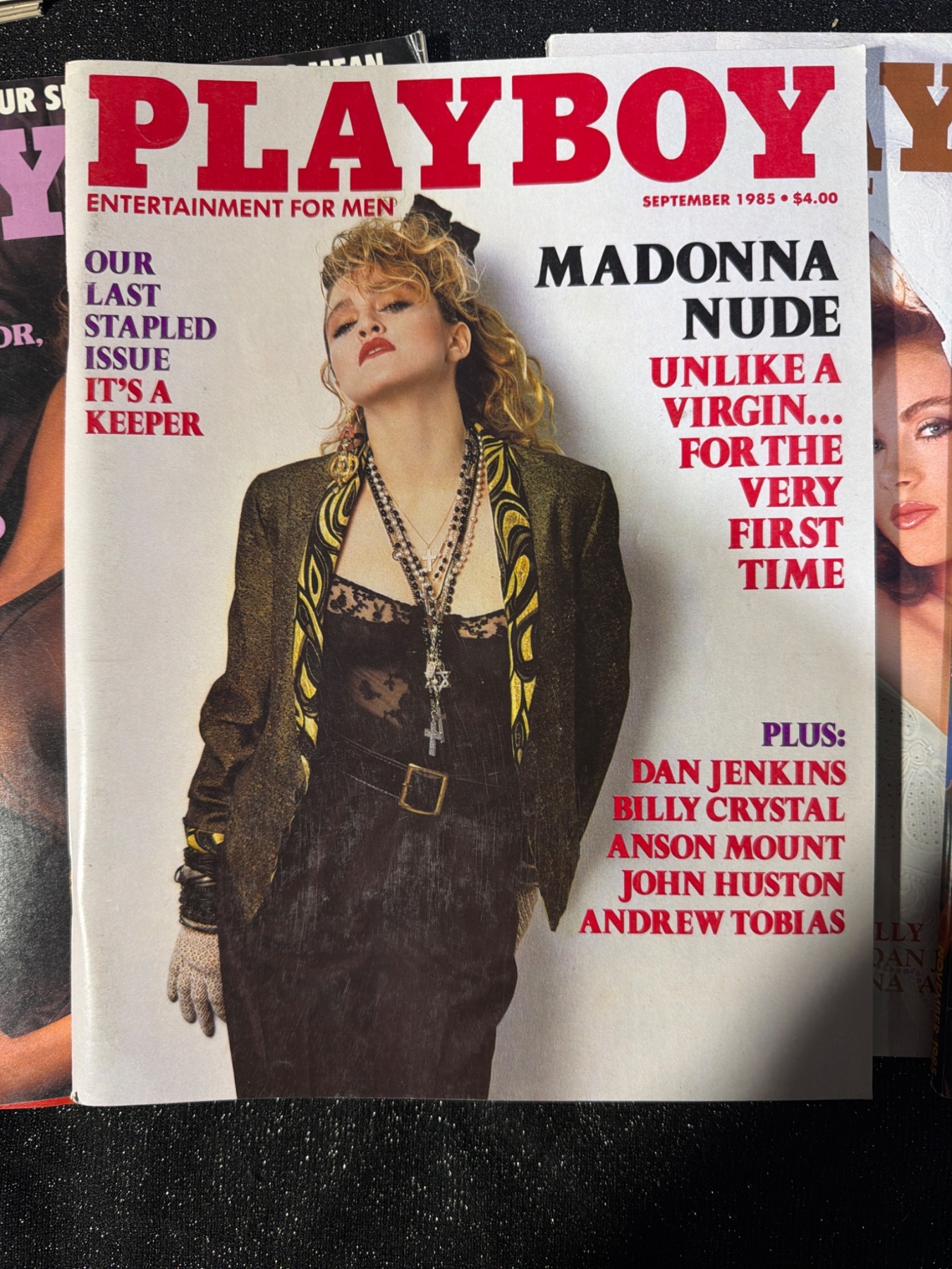 A comprehensive collection of Playboy magazines spanning the years 1983 to 1985, including the sought-after September 1985 issue featuring Madonna. These magazines offer a look back at classic editorial content, celebrity features, and vintage photography. Stored in a dedicated box to maintain condition, sizes of each magazine are standard issue dimensions of approximately 8.5 x 11 inches.