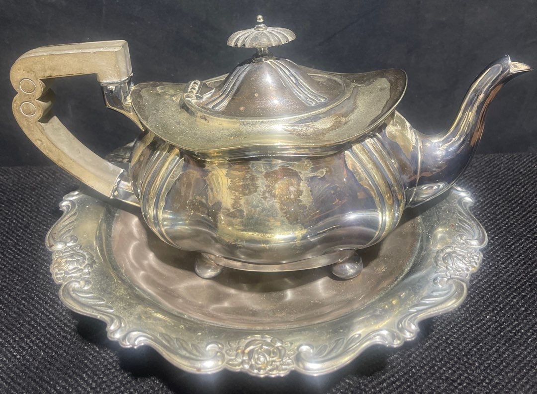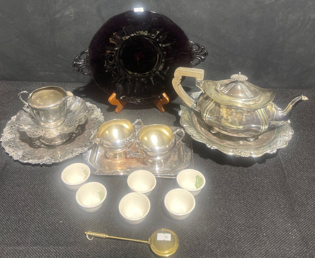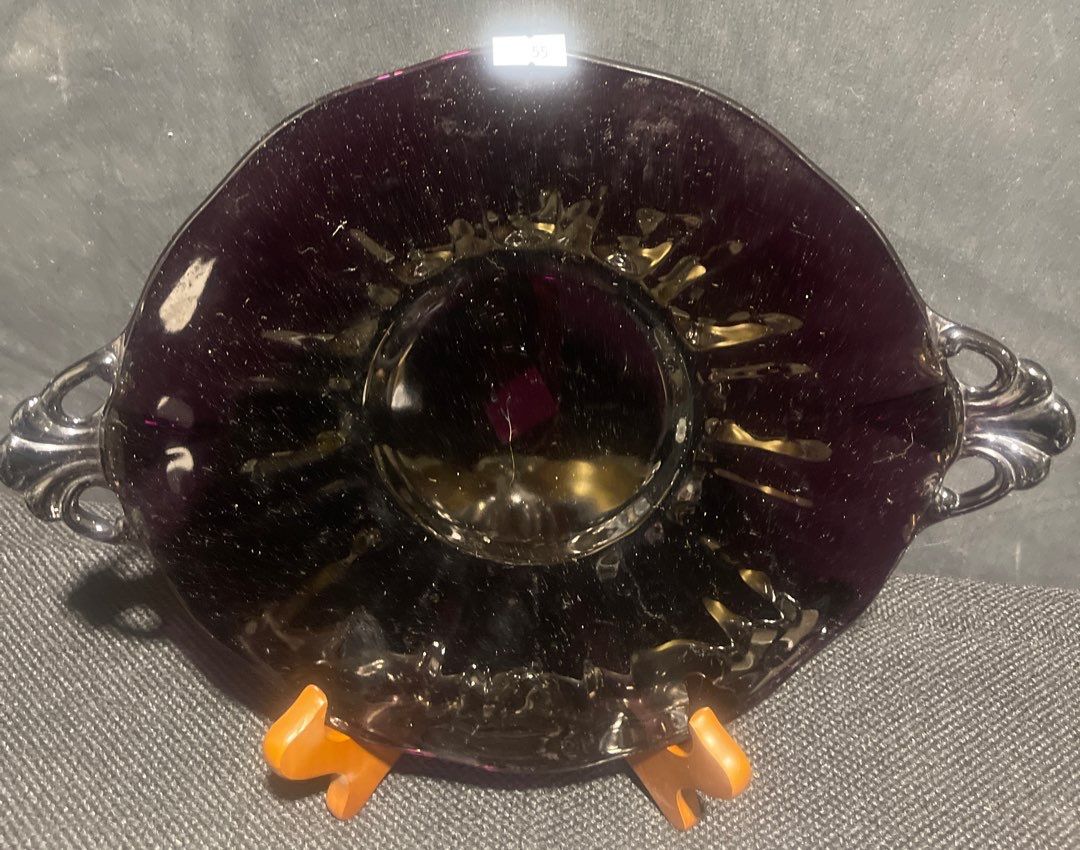 Plum Art Glass Decorative Plate 10T w/ Silver Plated Tea Service & More