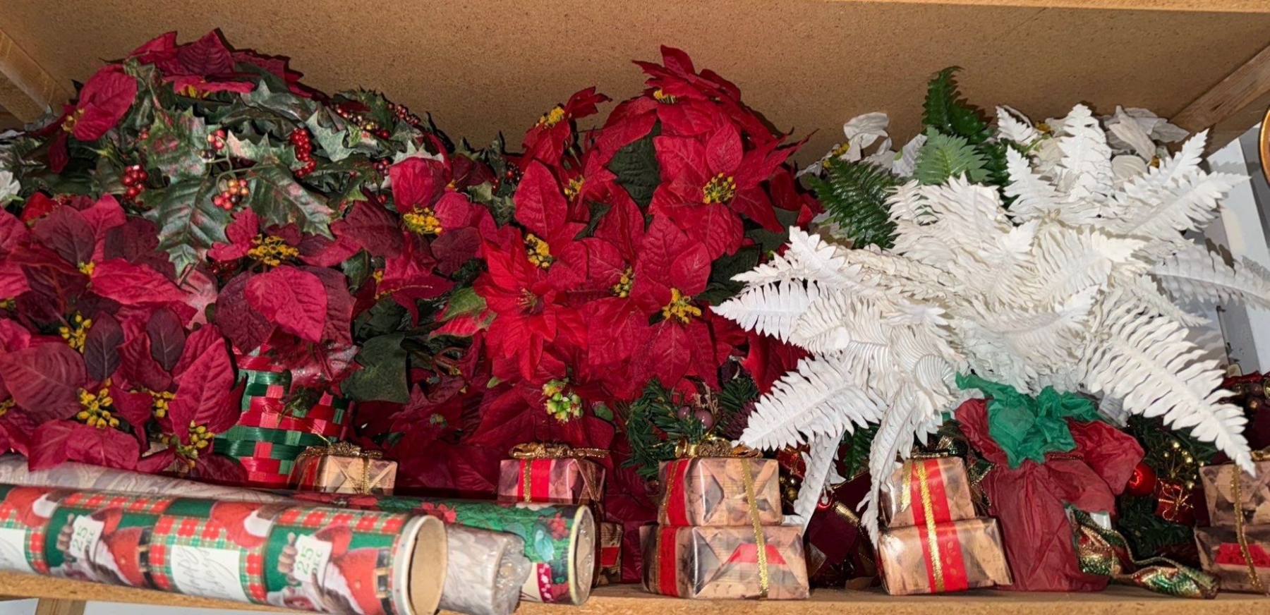 Poisetta & Holiday Gift Paper Collection - Artificial Holiday Foliage w/ New Gift Wrap Rolls