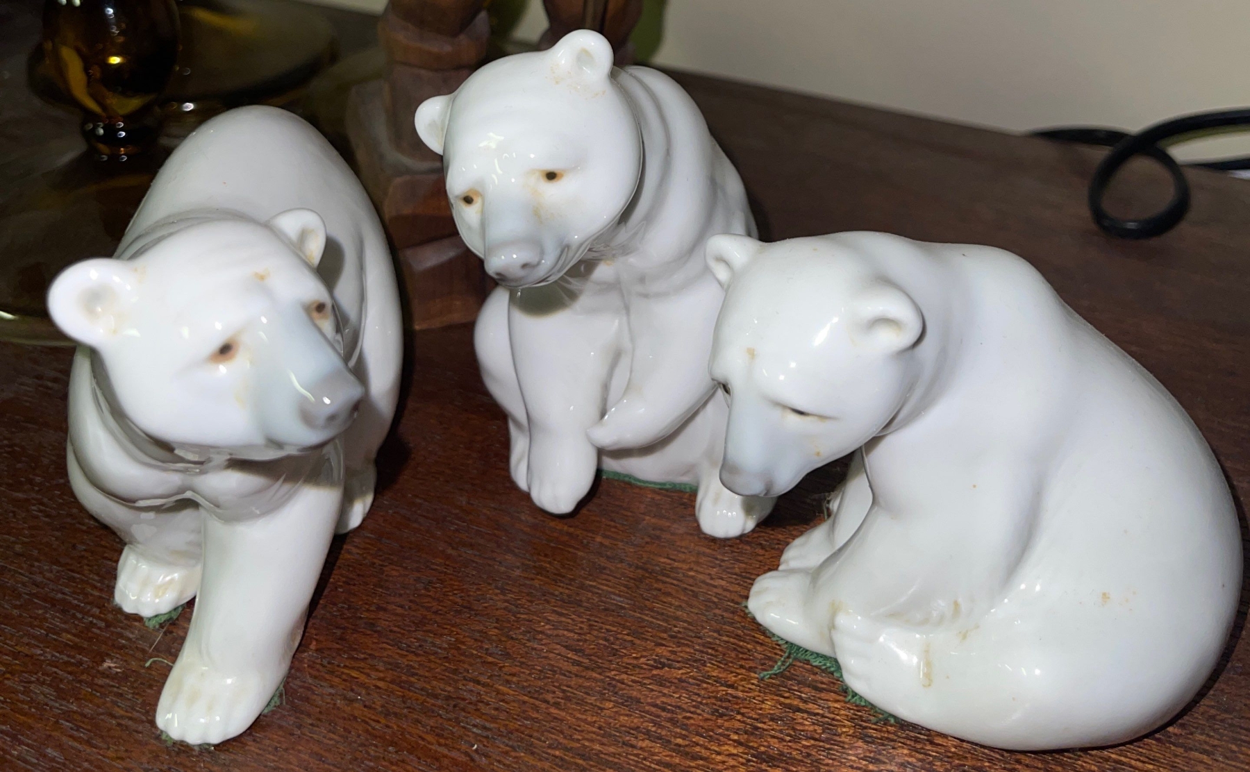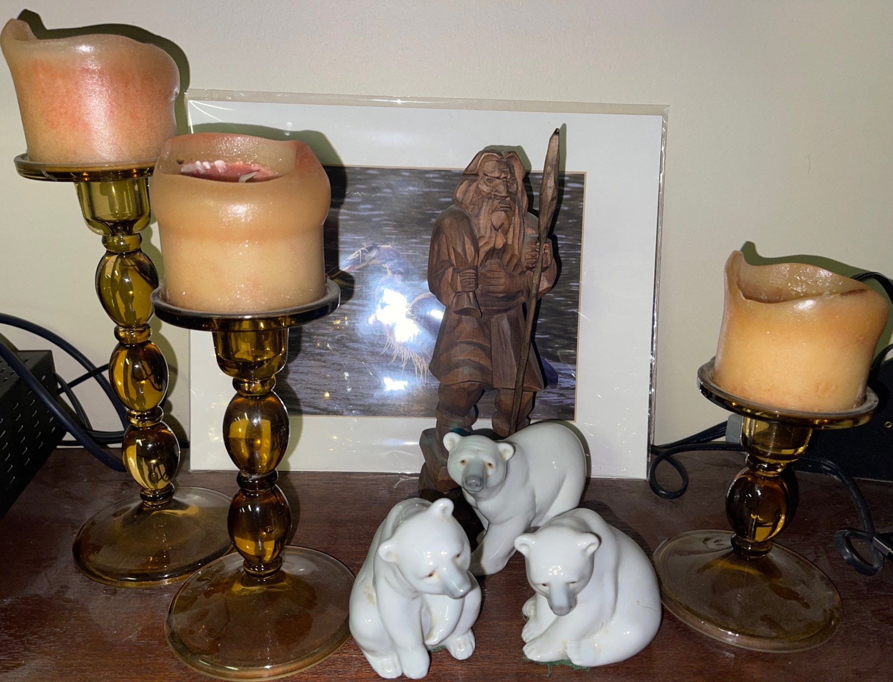 Polar Bear Trio Pedastal Candle Set Handcarved Figurine 8T & More