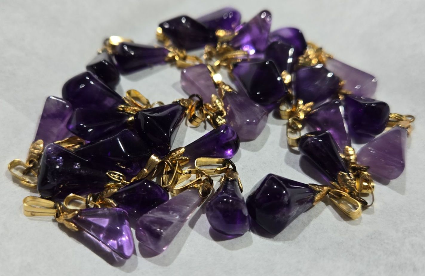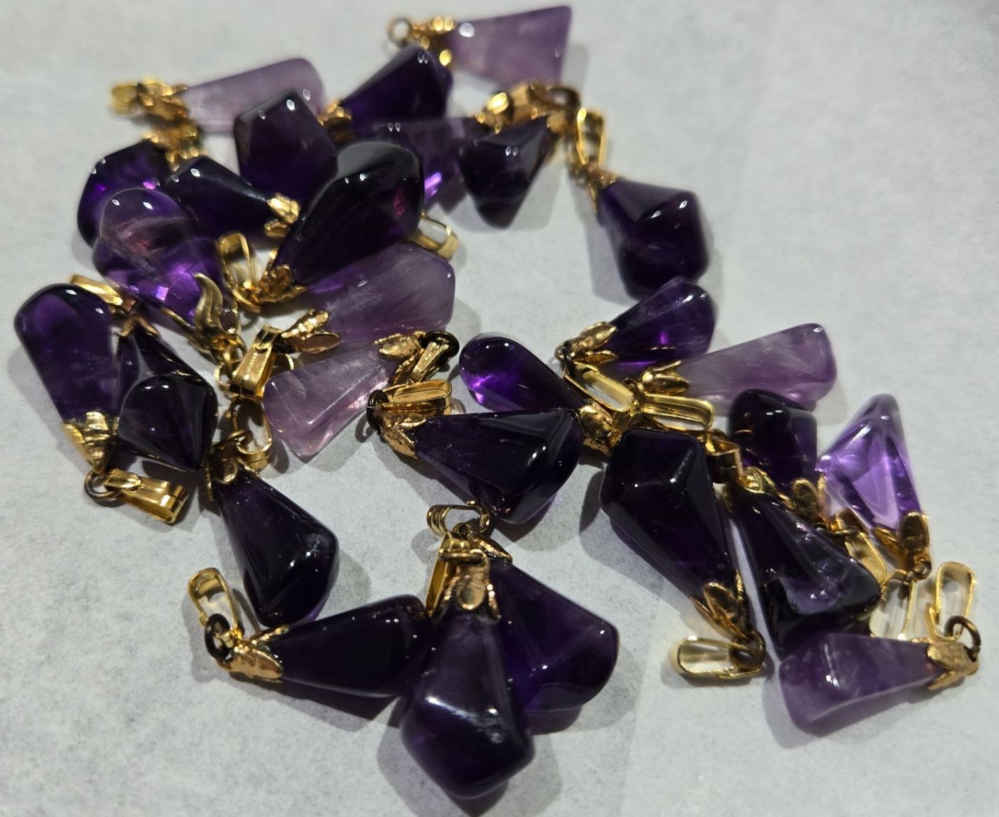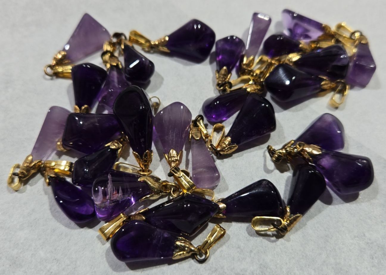 Polished Amethyst Gemstone Pendants With Gold Plated Clasps