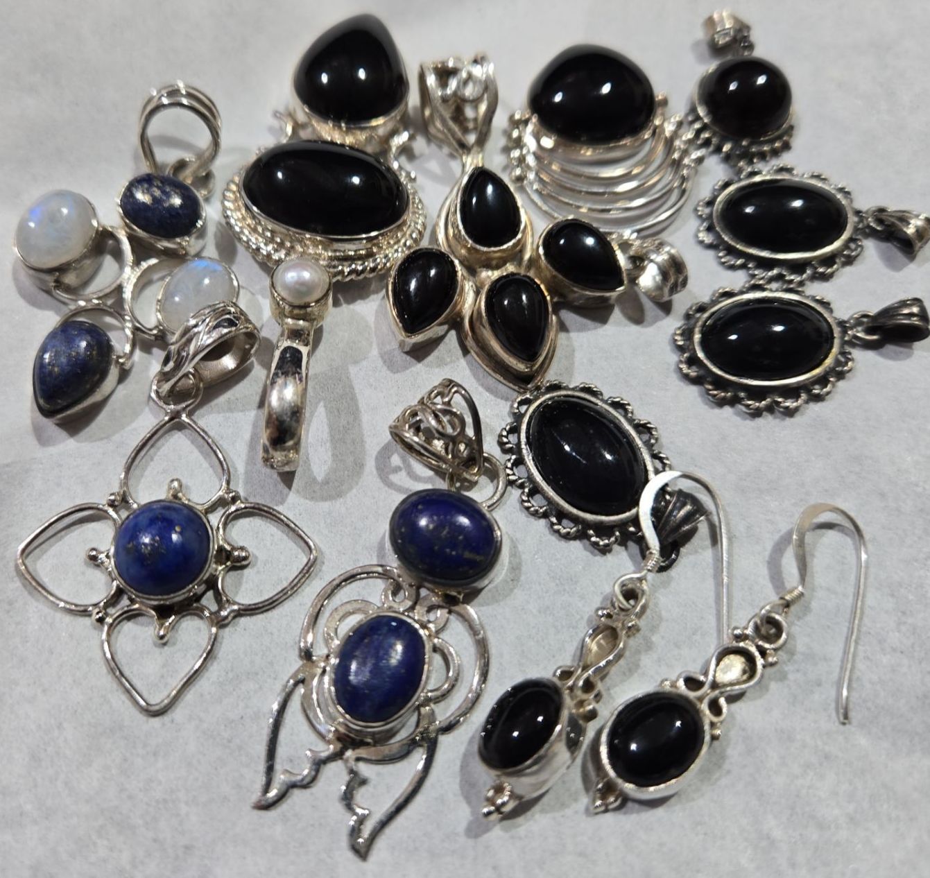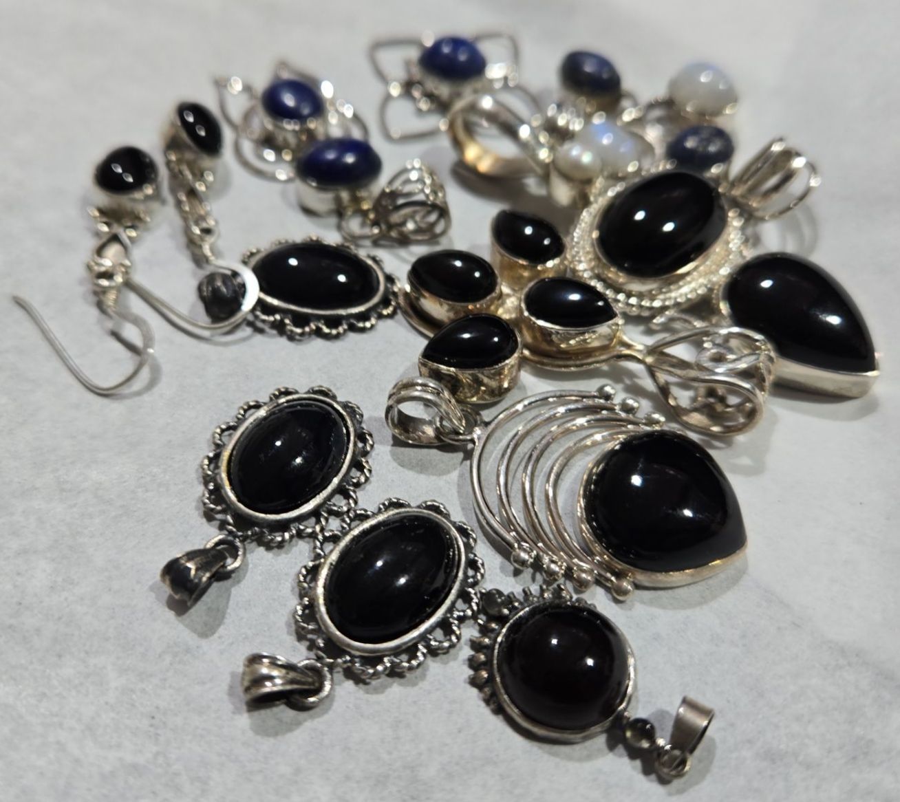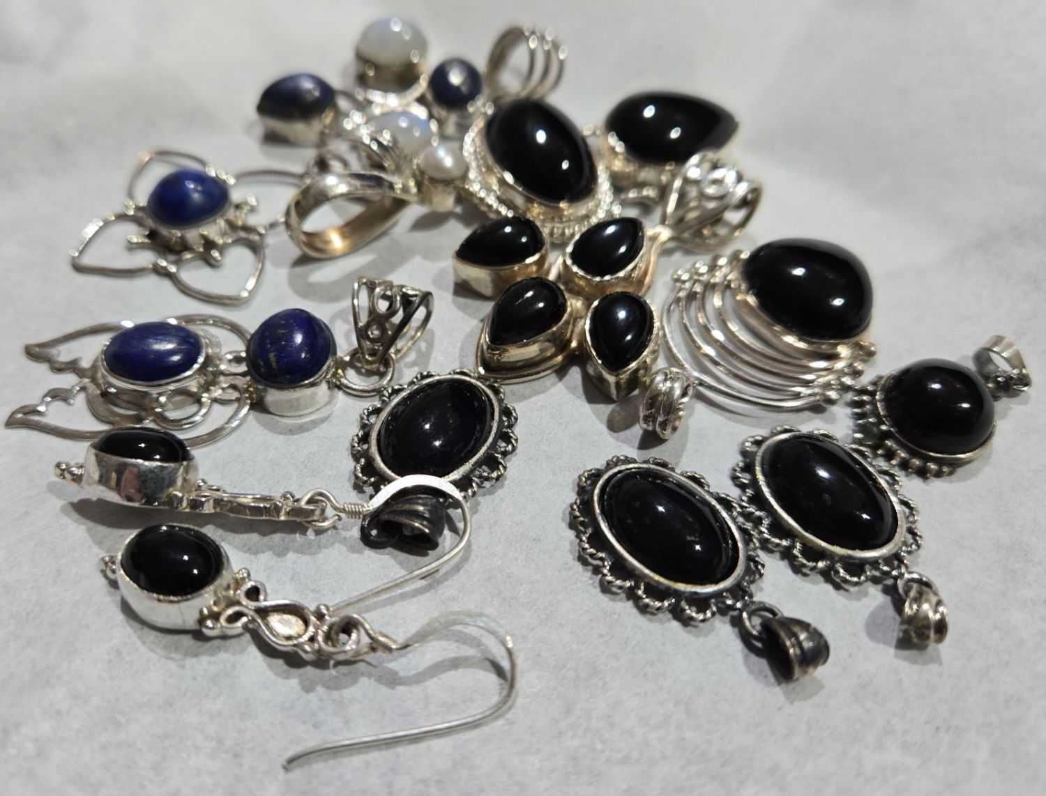Polished Black Obsidian, Opalite & Sodalite Stone Pendants With 925 Settings
