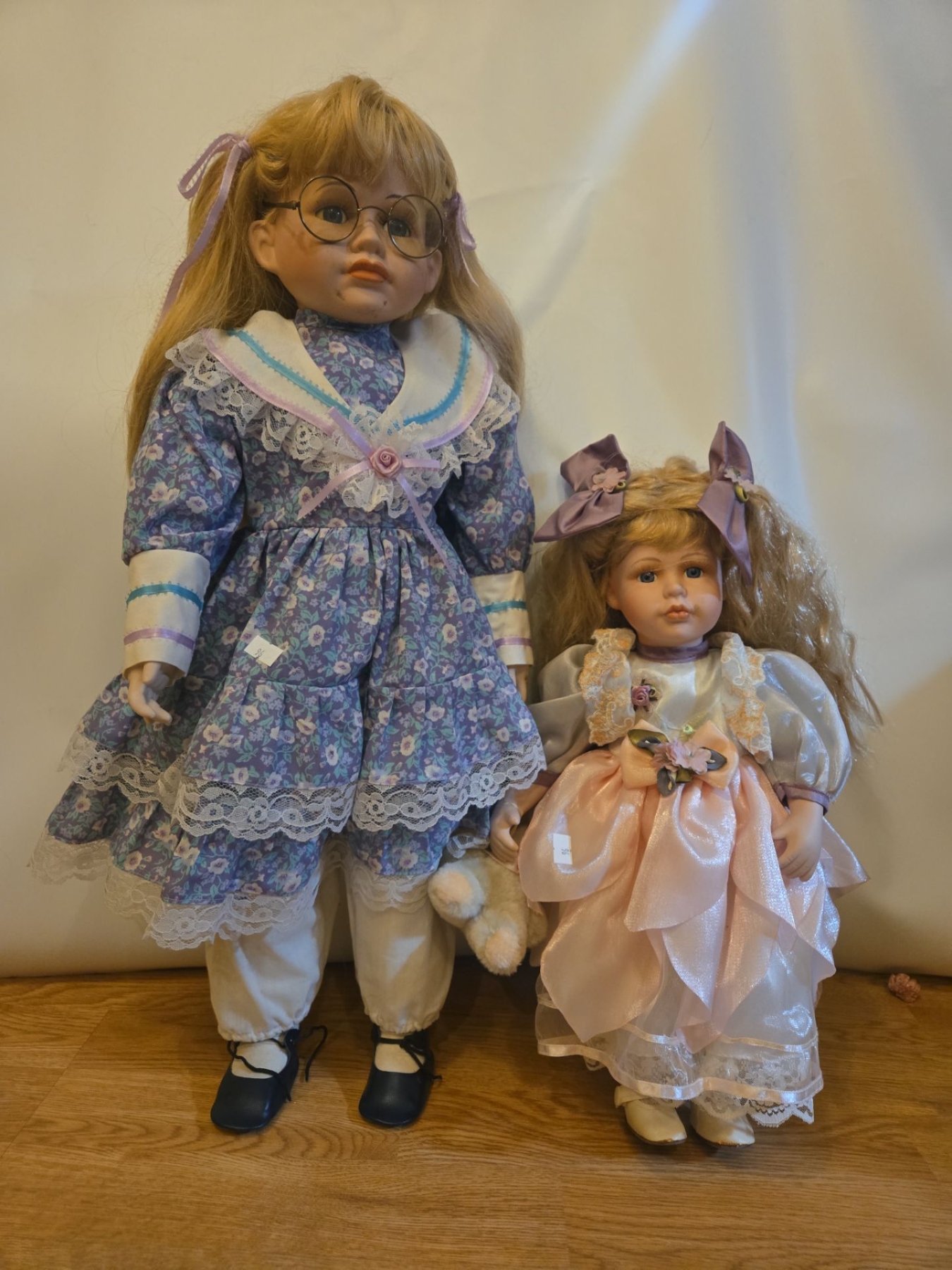 Porcelain Dolls: Big Sister, Little Sister. Tallest is 25T