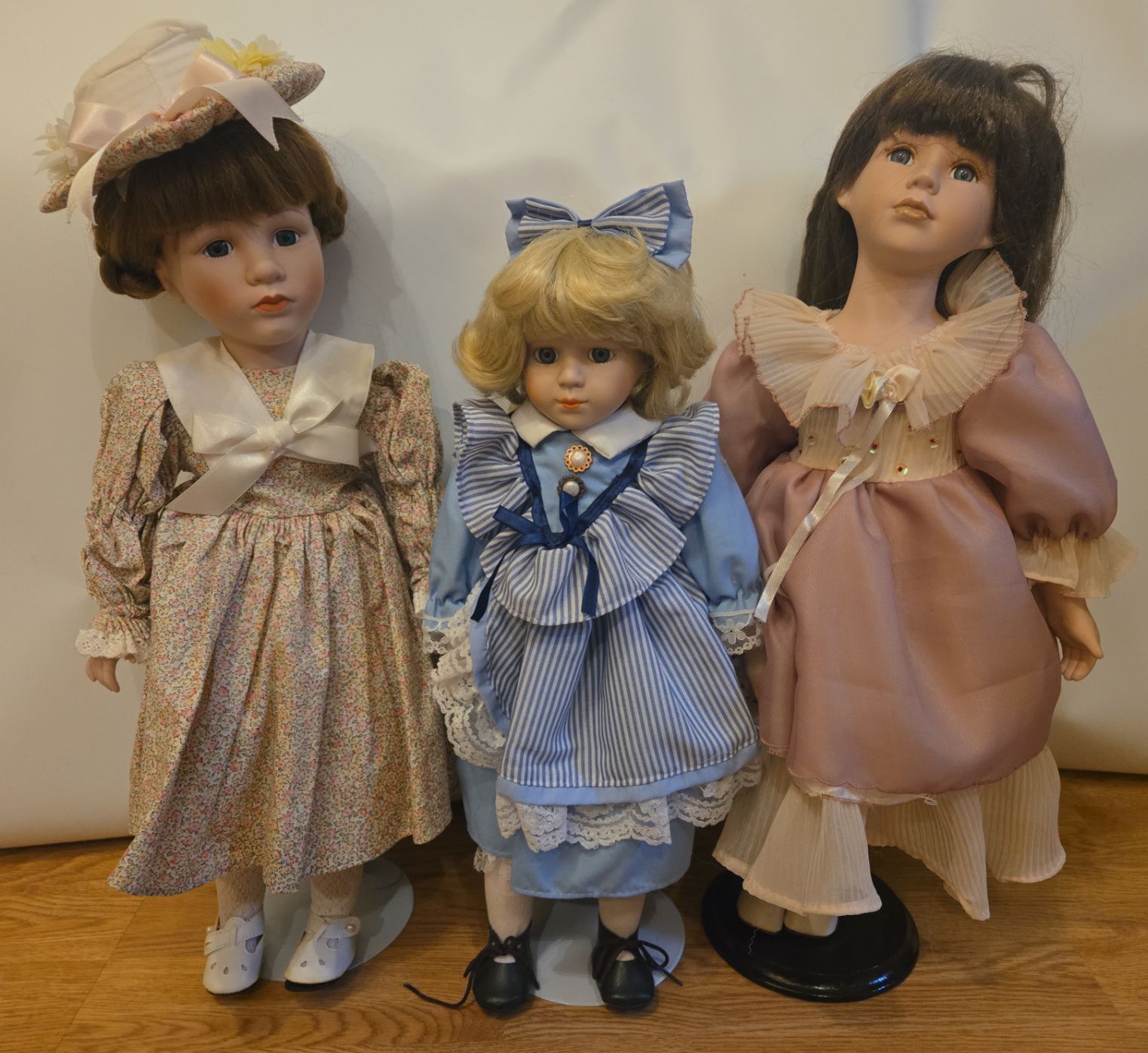 Porcelain Dolls: Fancy Females. Tallest is 18T