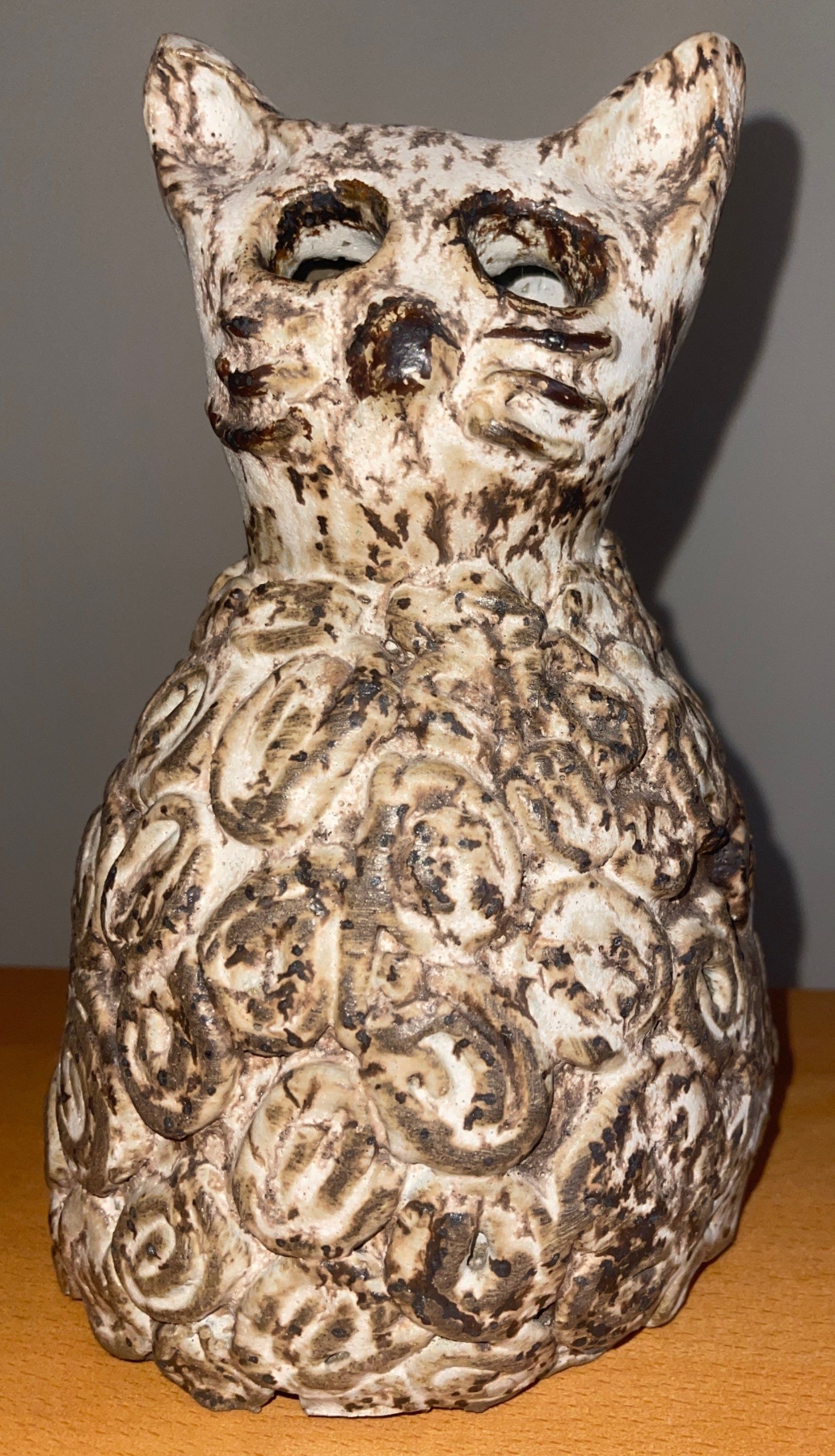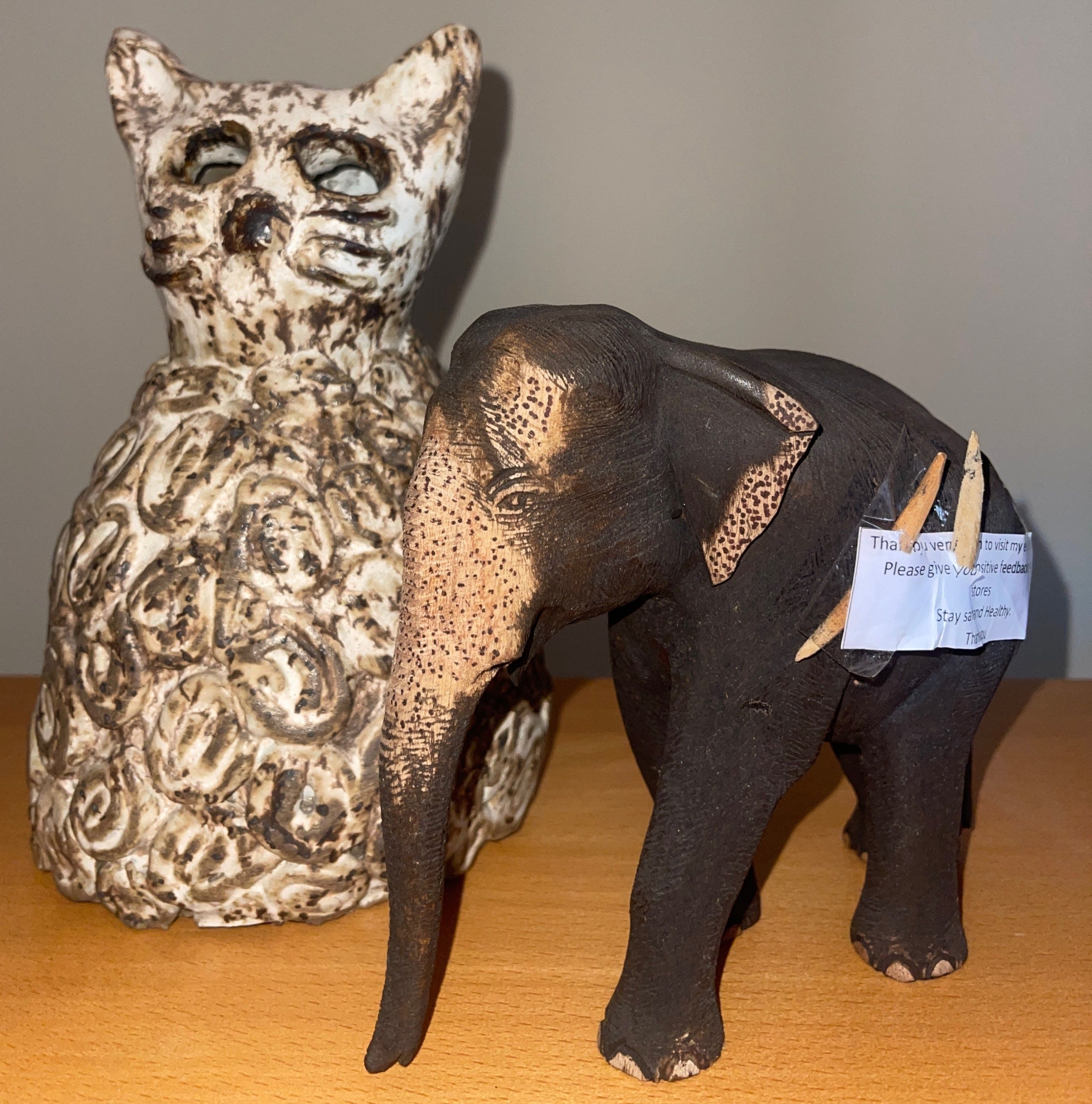 Pottery Like Built Cat & Elephant Sculpture Cat=9"tall Elephant=6" tall