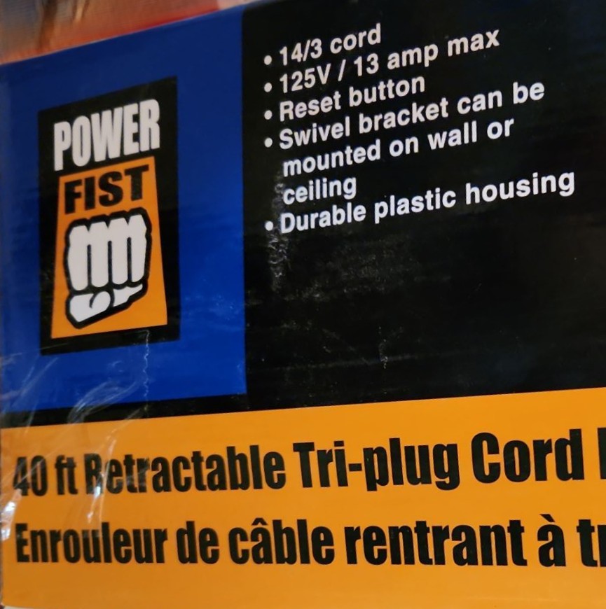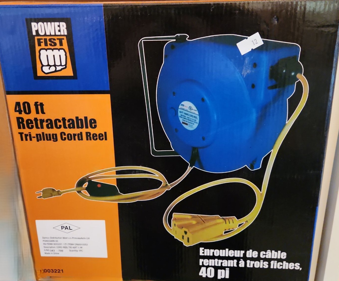 Power Fist 40 Foot Retractable Tri- Plug Cord Reel