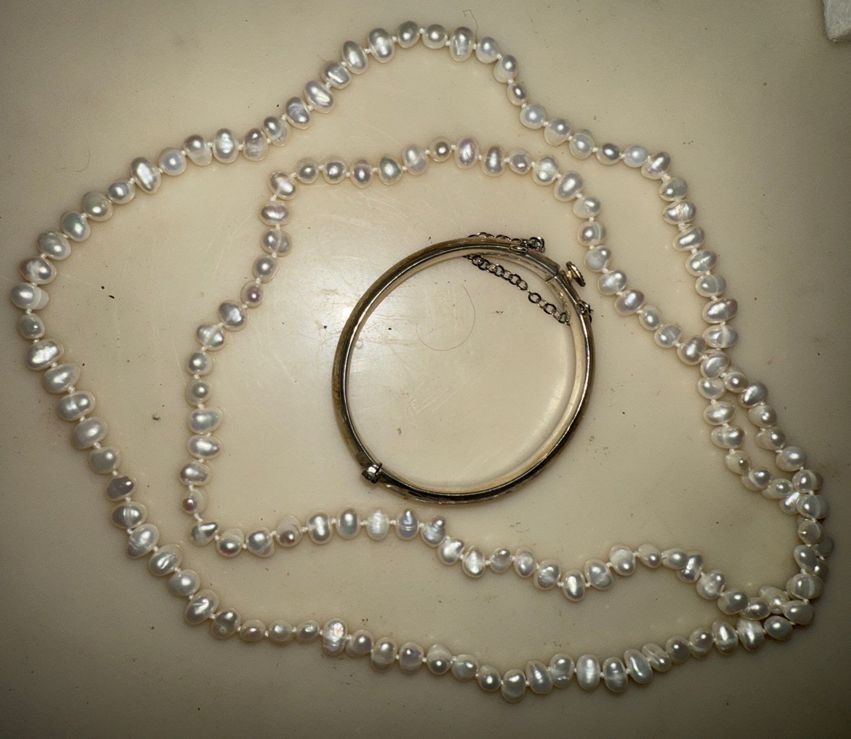 Pretty String Of Fresh Water Pearls w/ Child Size Silver Bagle