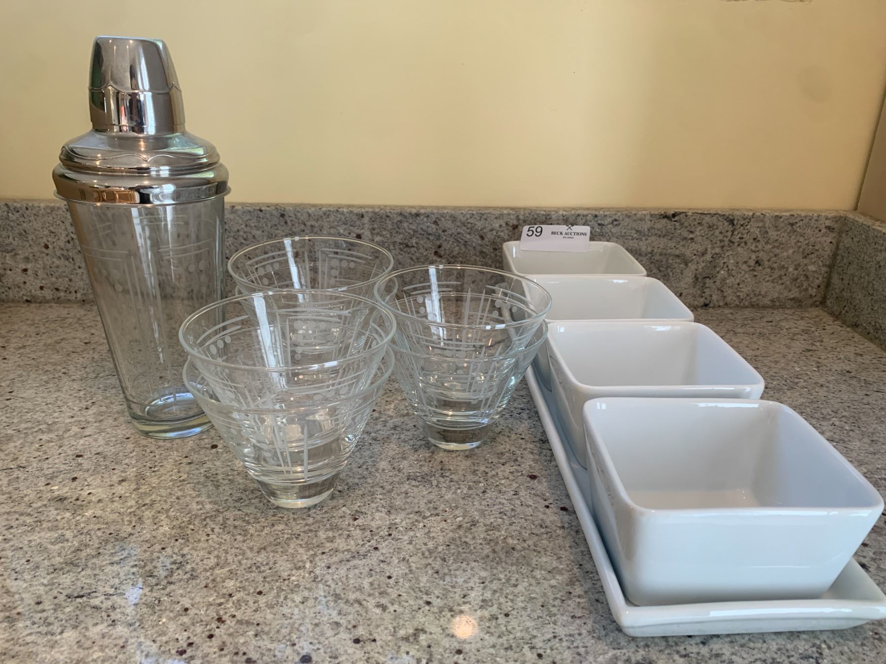 Princess House Cocktail Shaker and Glassware Set, and Entertaining Essentials Bowl Set