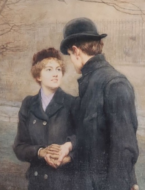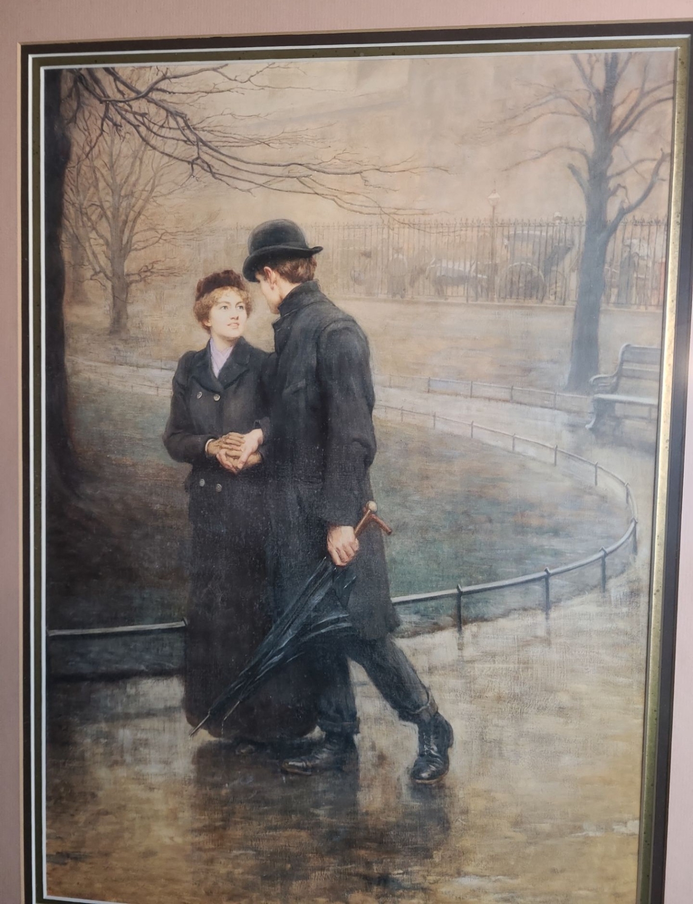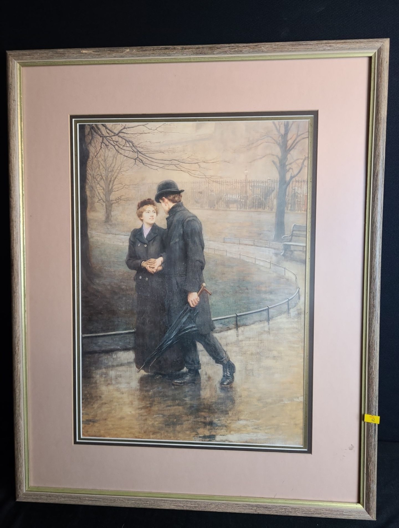 Print of Rainy Walk in the Park 24 X 30, Framed Under Glass