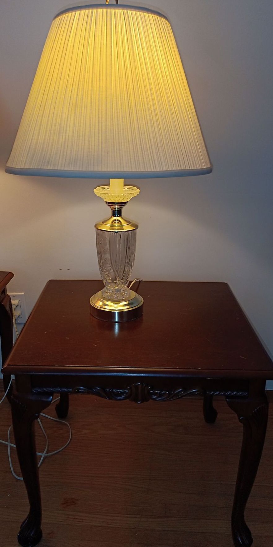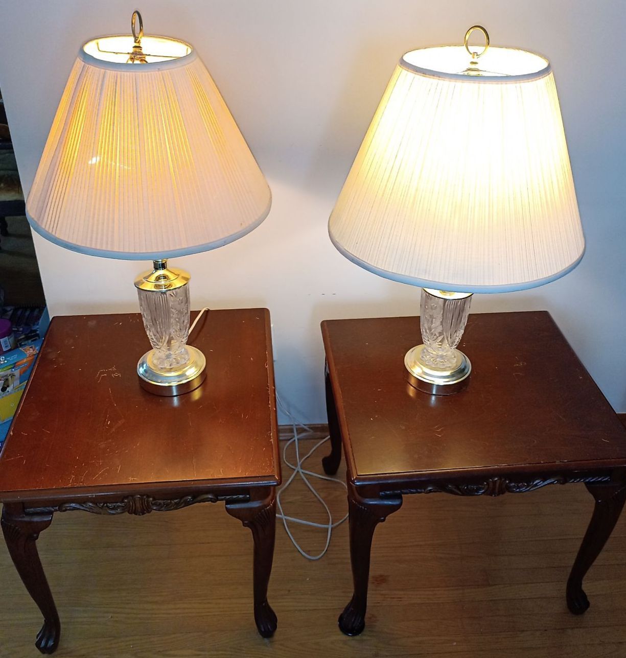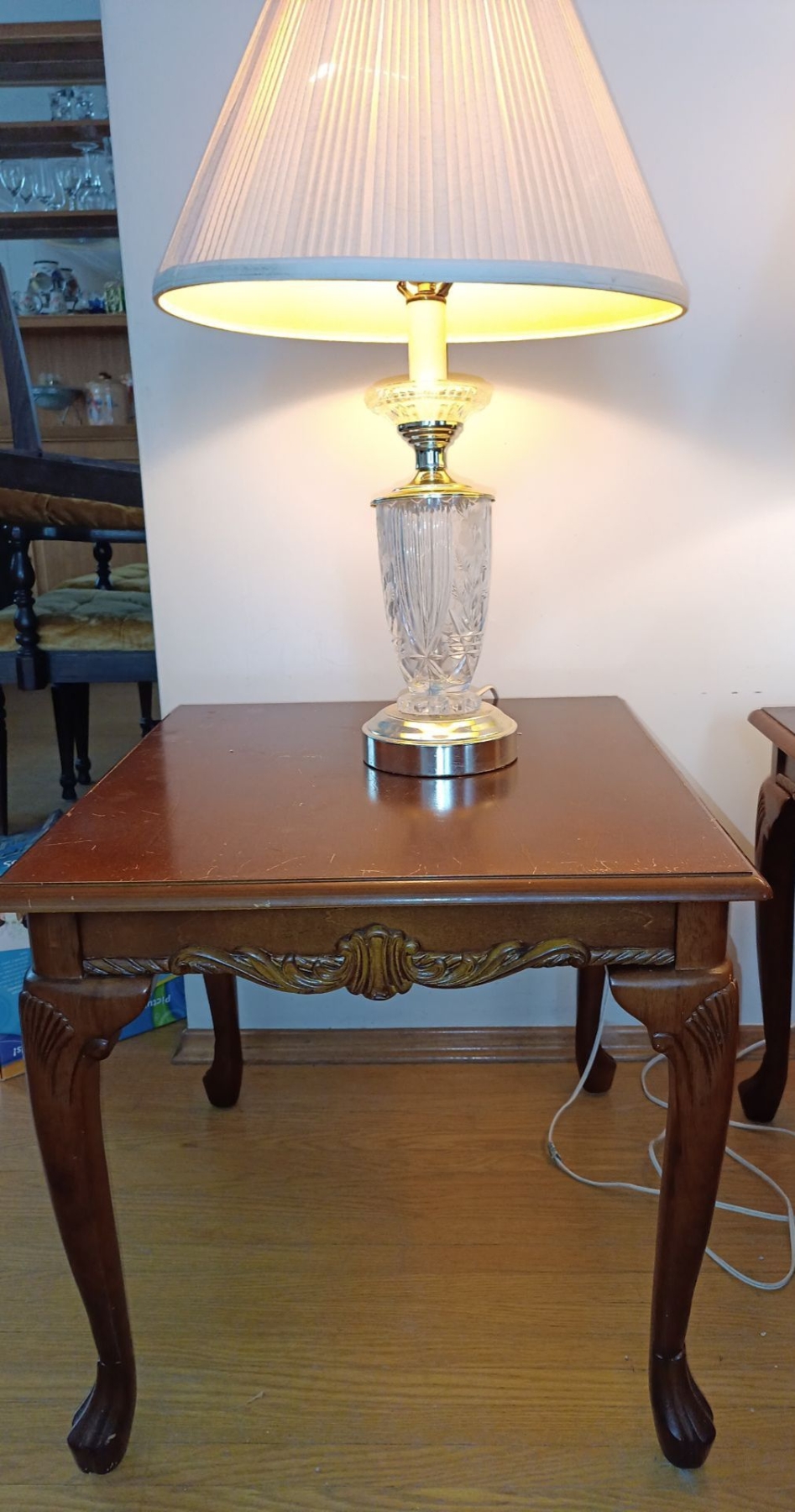 Quality Carved Mahogany Ball & Claw Side/End Tables with Two Crystal Lamps