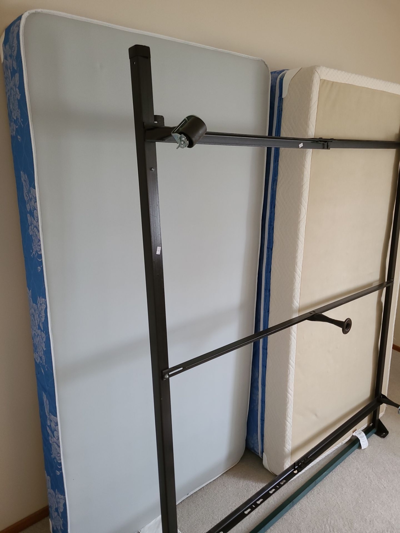 Queen Frame w/ 2 Single Box Springs & 1 Single  Mattress