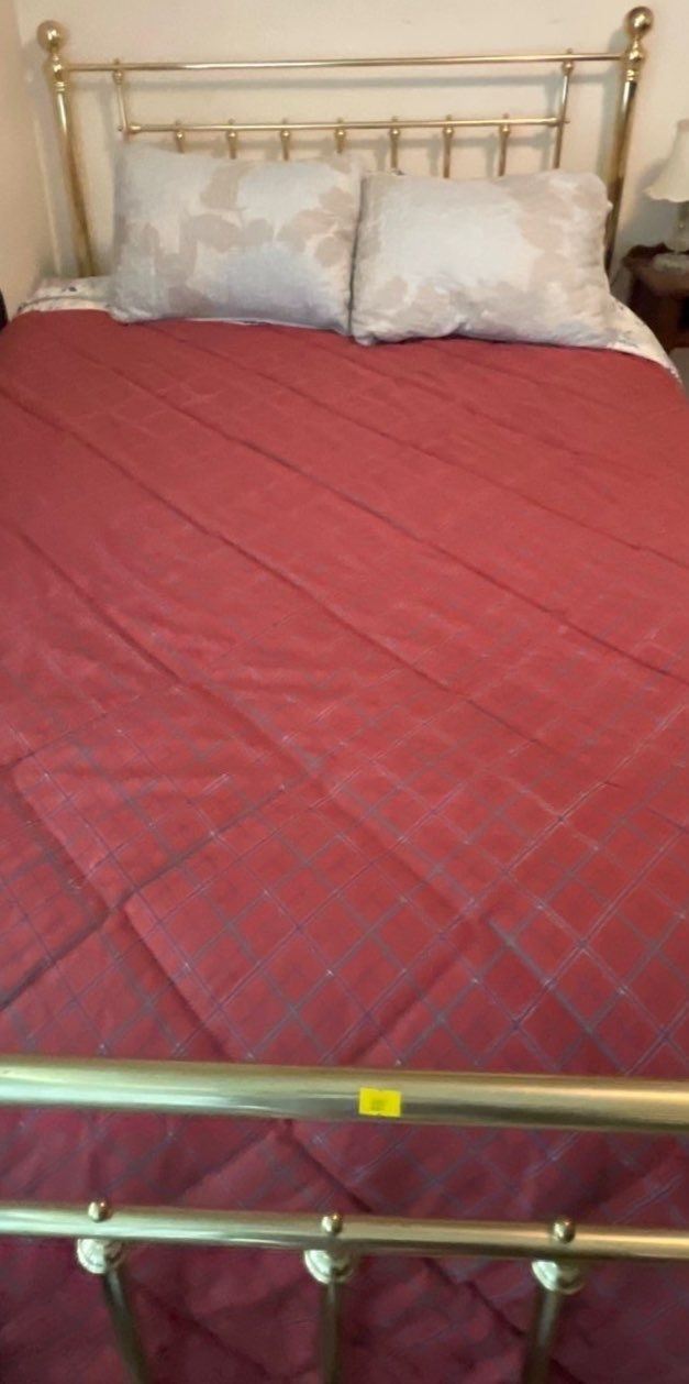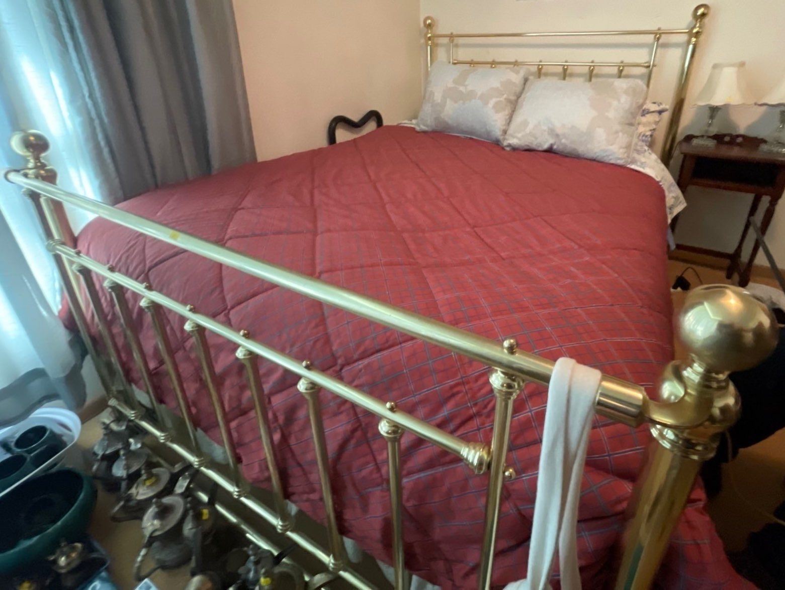 Queen Size Brass Bed & Mattress & Bedding 60W