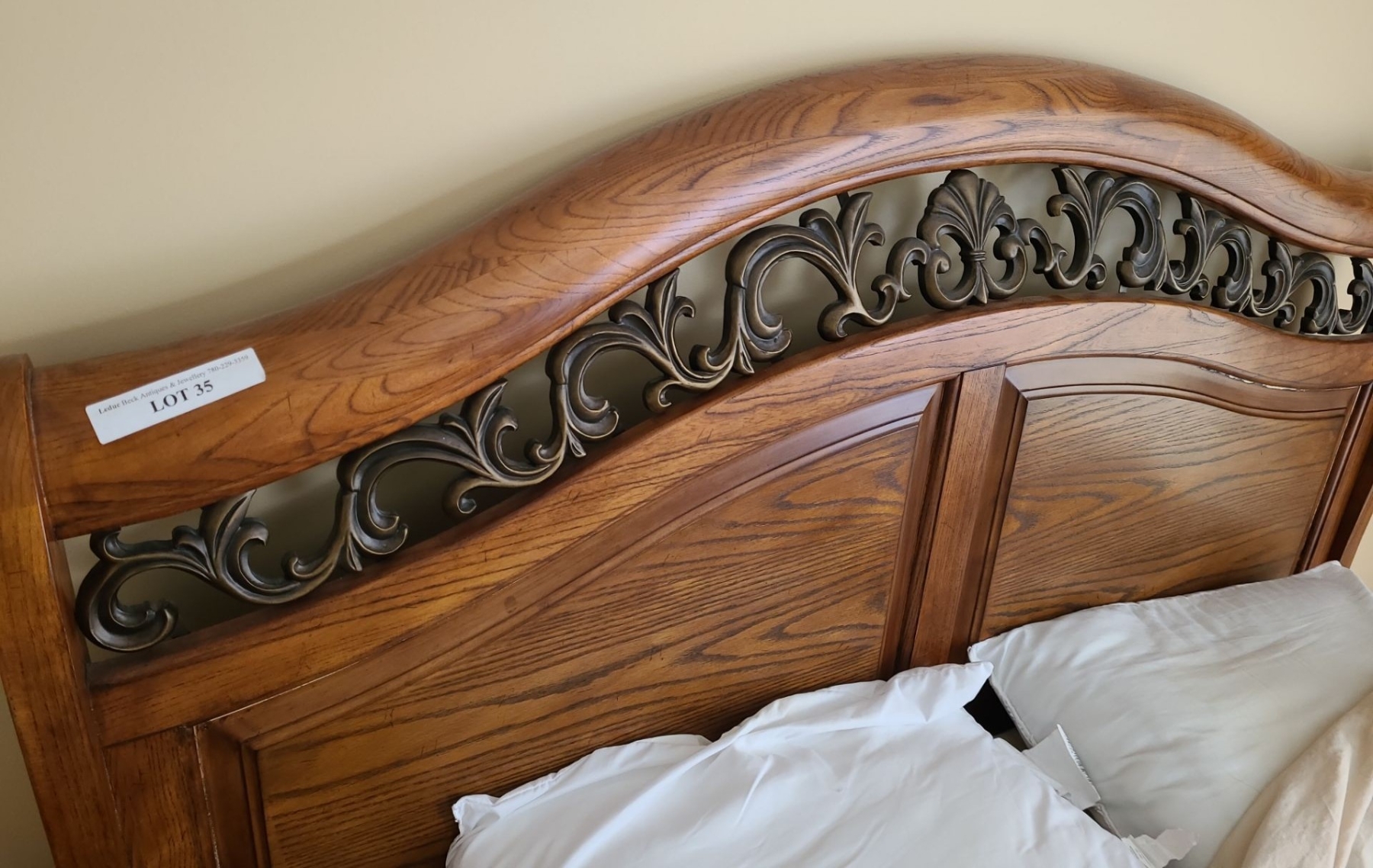 Queen Size Decorative Bed, Headboard may need to be refinished. Disassembly required, please bring tools