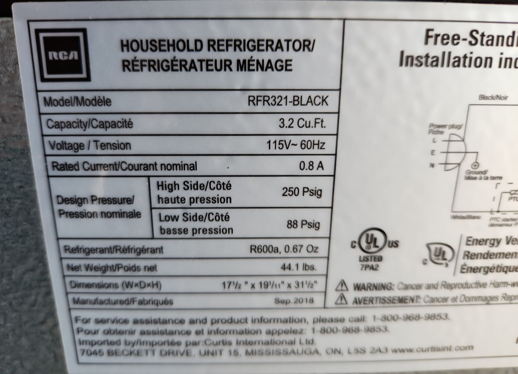 RCA Model RFR321-Black Black Mini Fridge