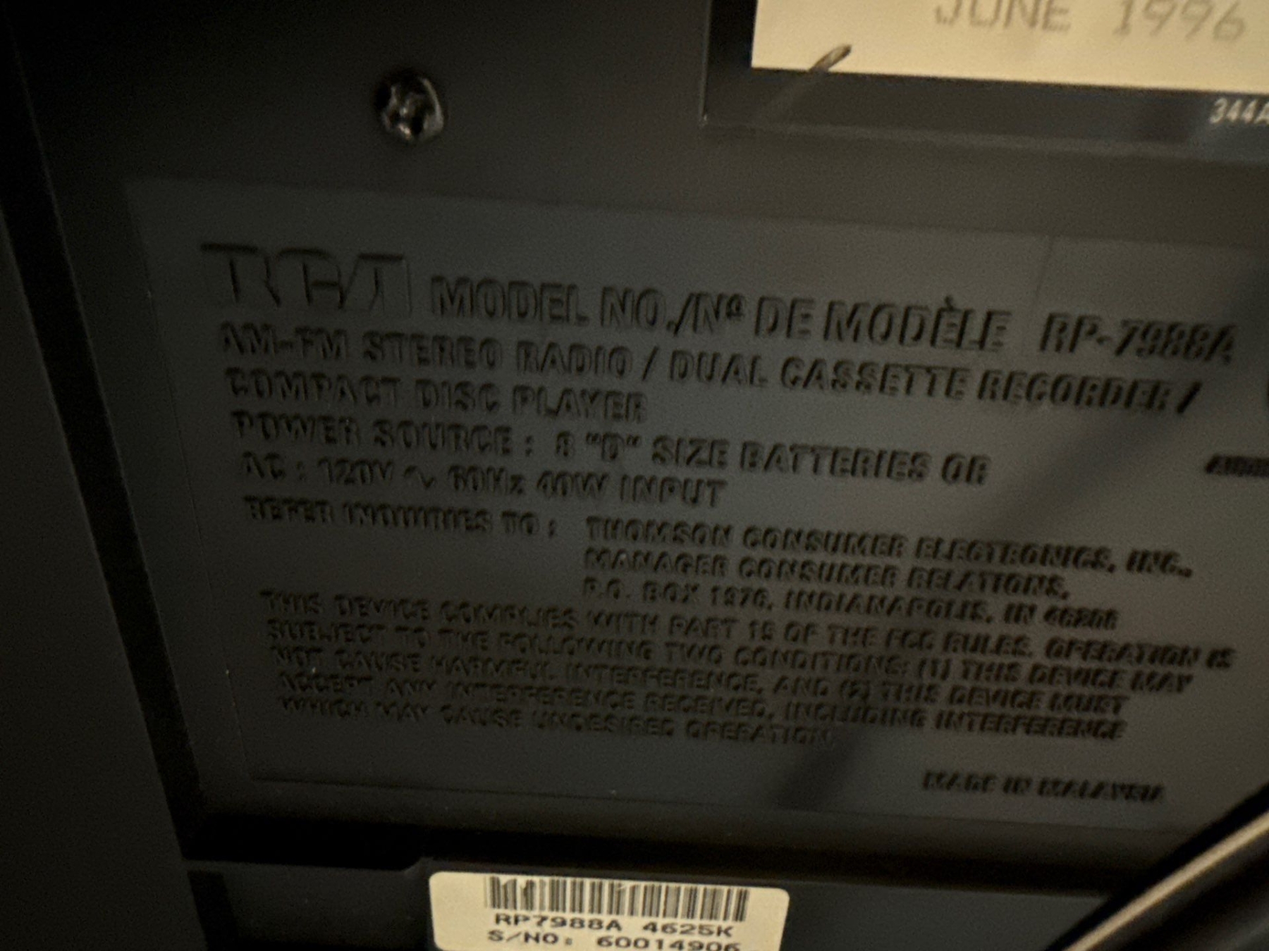 RCA Radio Model No. Rp-7988A